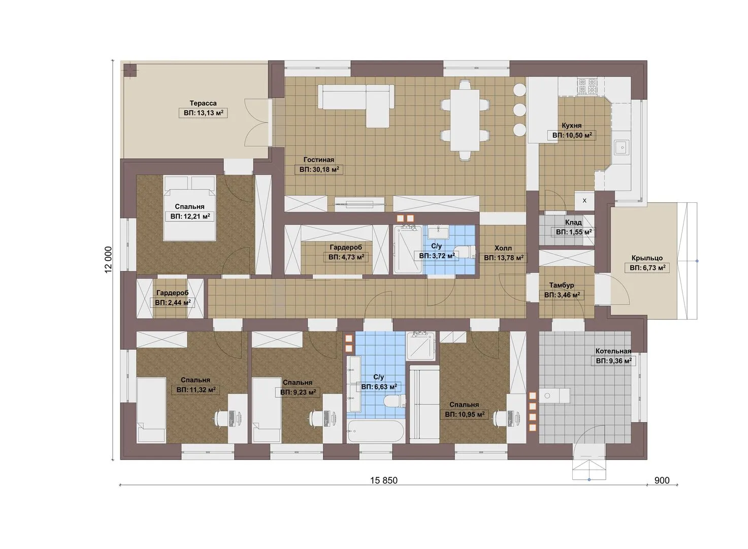 Одноэтажный дом Fixplans-8198