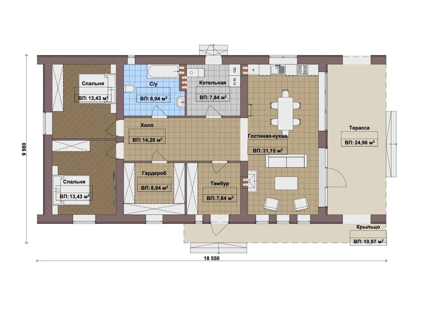 Одноэтажный дом Fixplans-12968