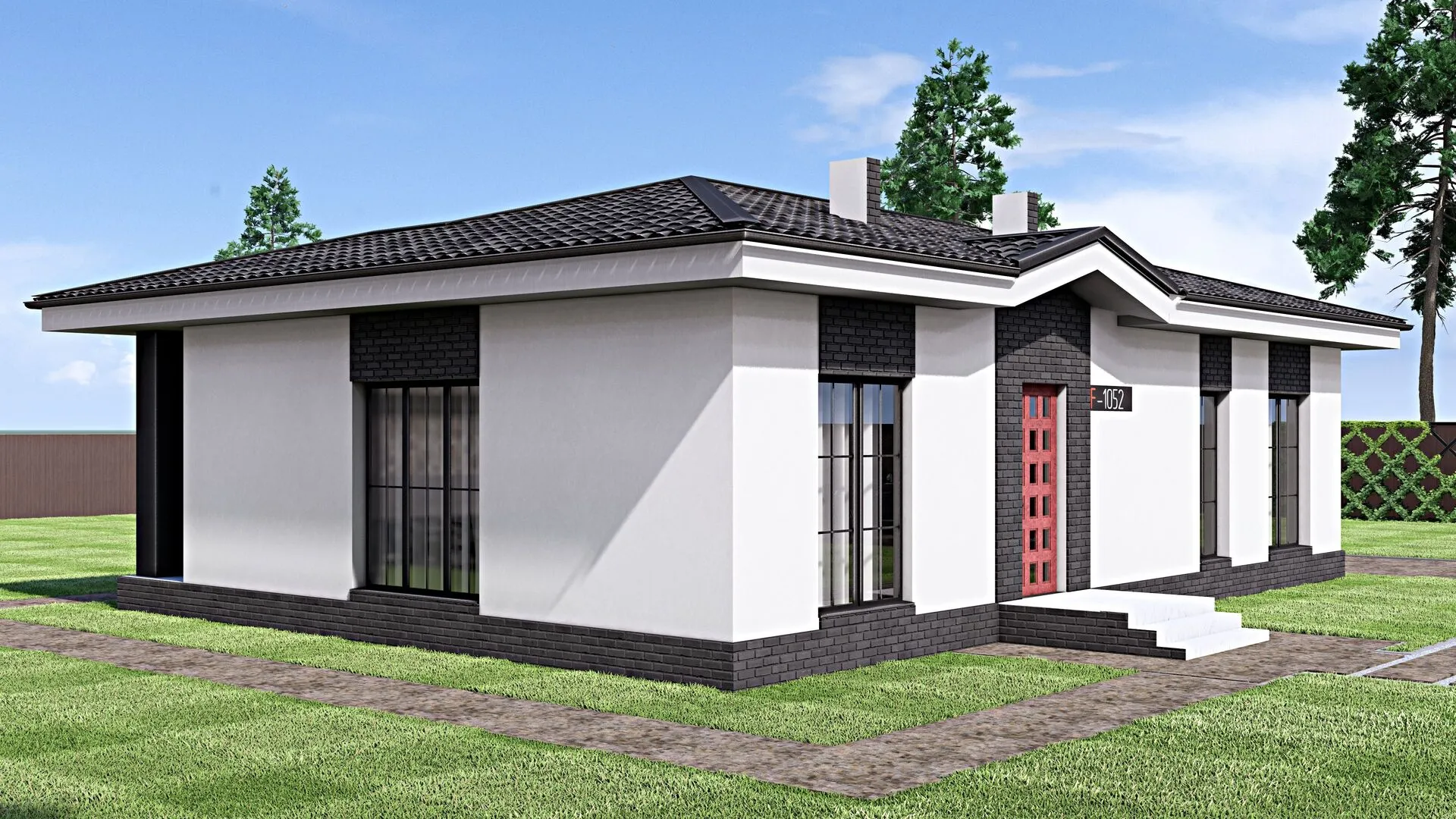 Одноэтажный дом в современном стиле THS-0014