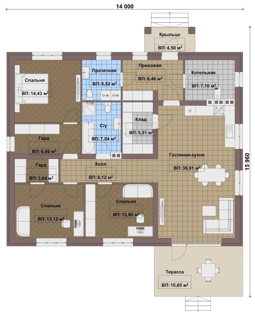 Одноэтажный дом FIXPLANS- 1232