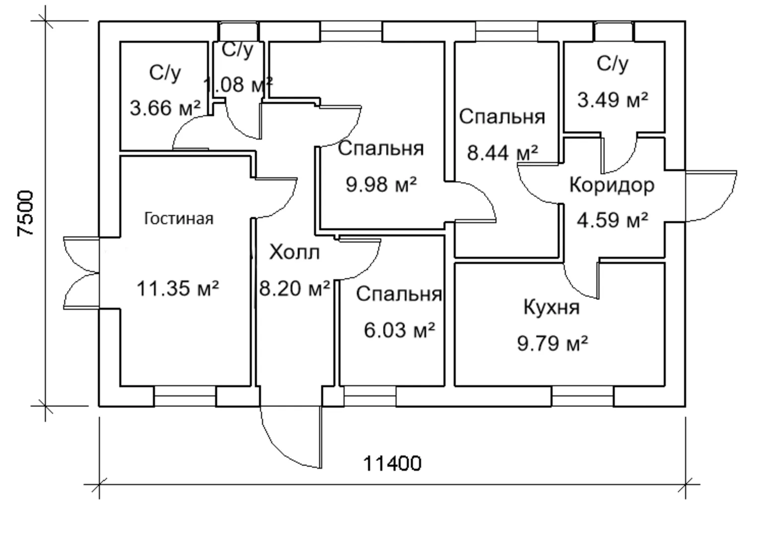 Одноэтажный дом из газоблока 66 кв.м.
