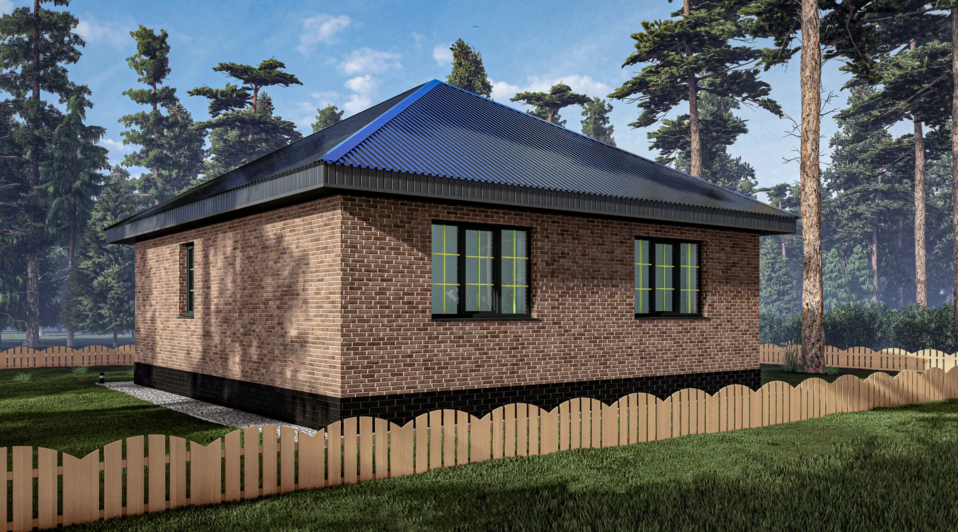 Заказать конусльтацию по:Одноэтажный дом из кирпича с большой гостинной
