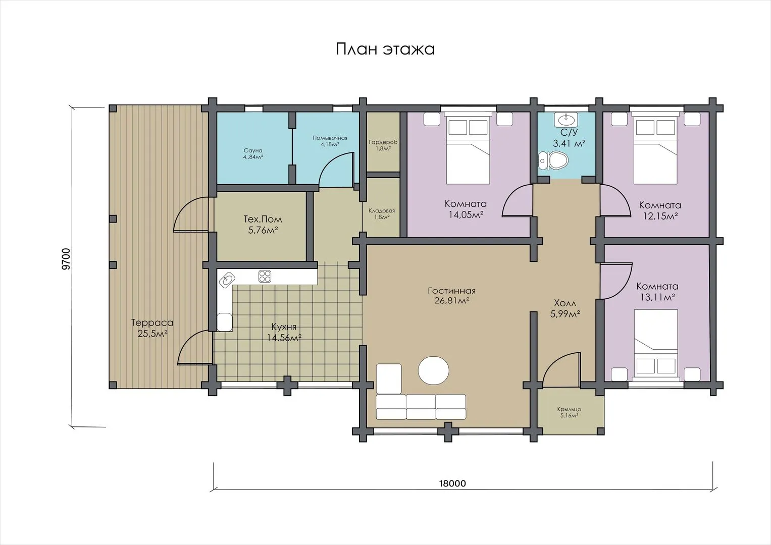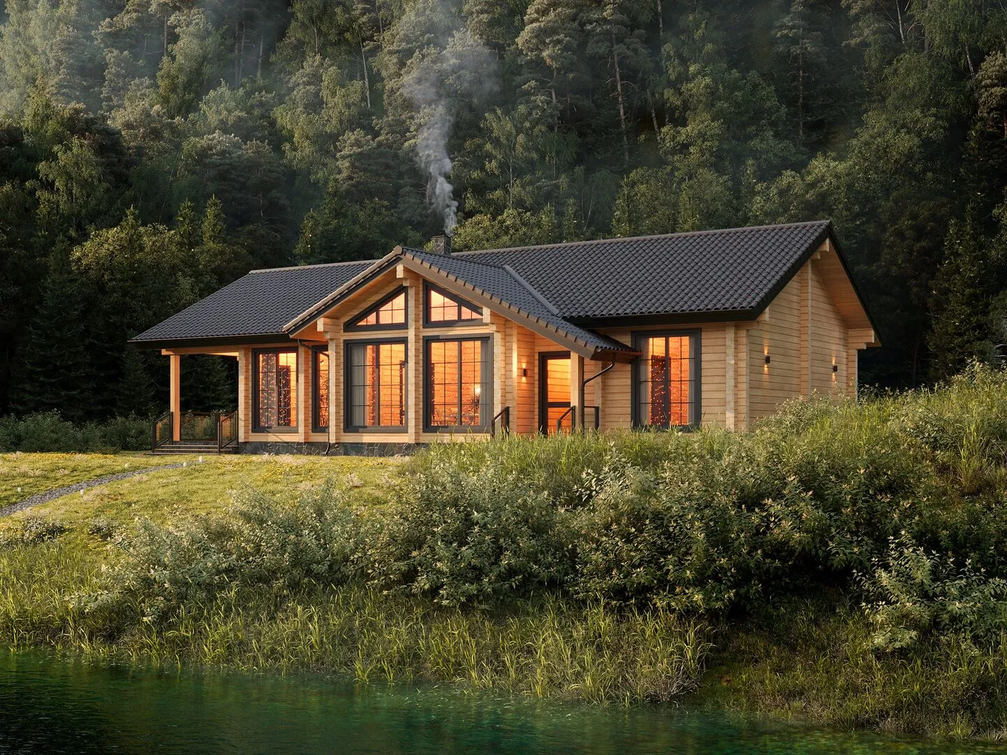 Одноэтажный дом из клеёного бруса КБ-140