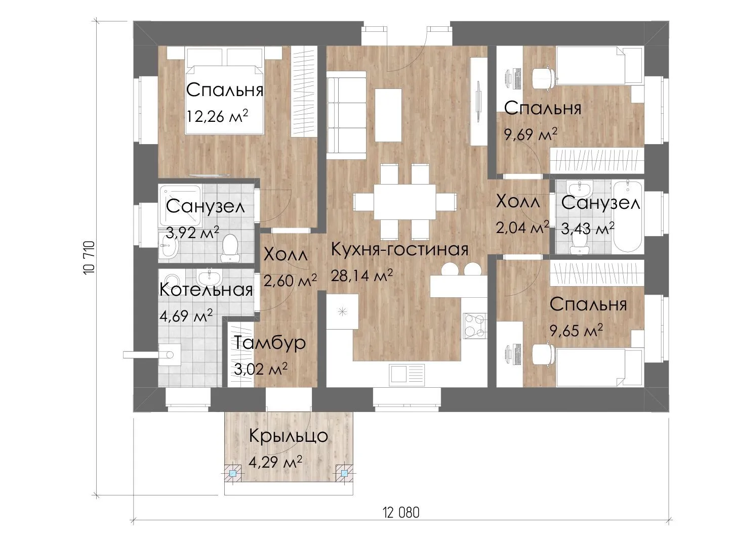 Одноэтажный дом " Киран" 83.73м2