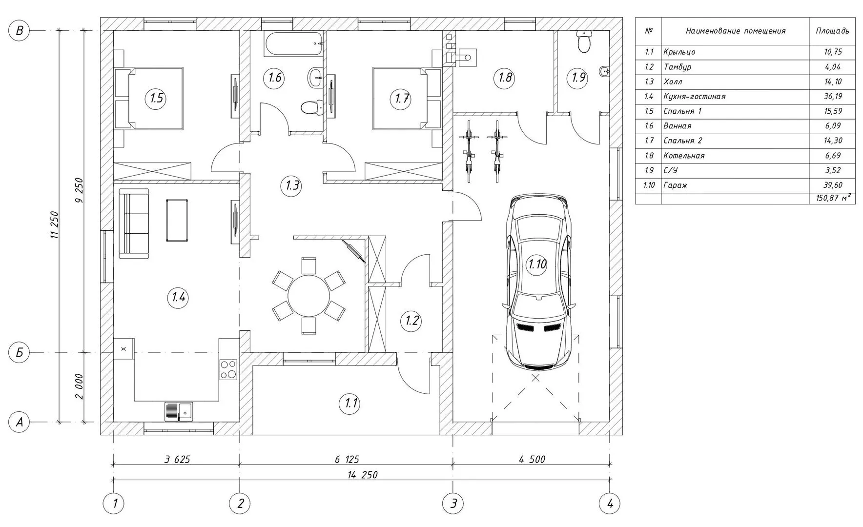 Одноэтажный дом С-150