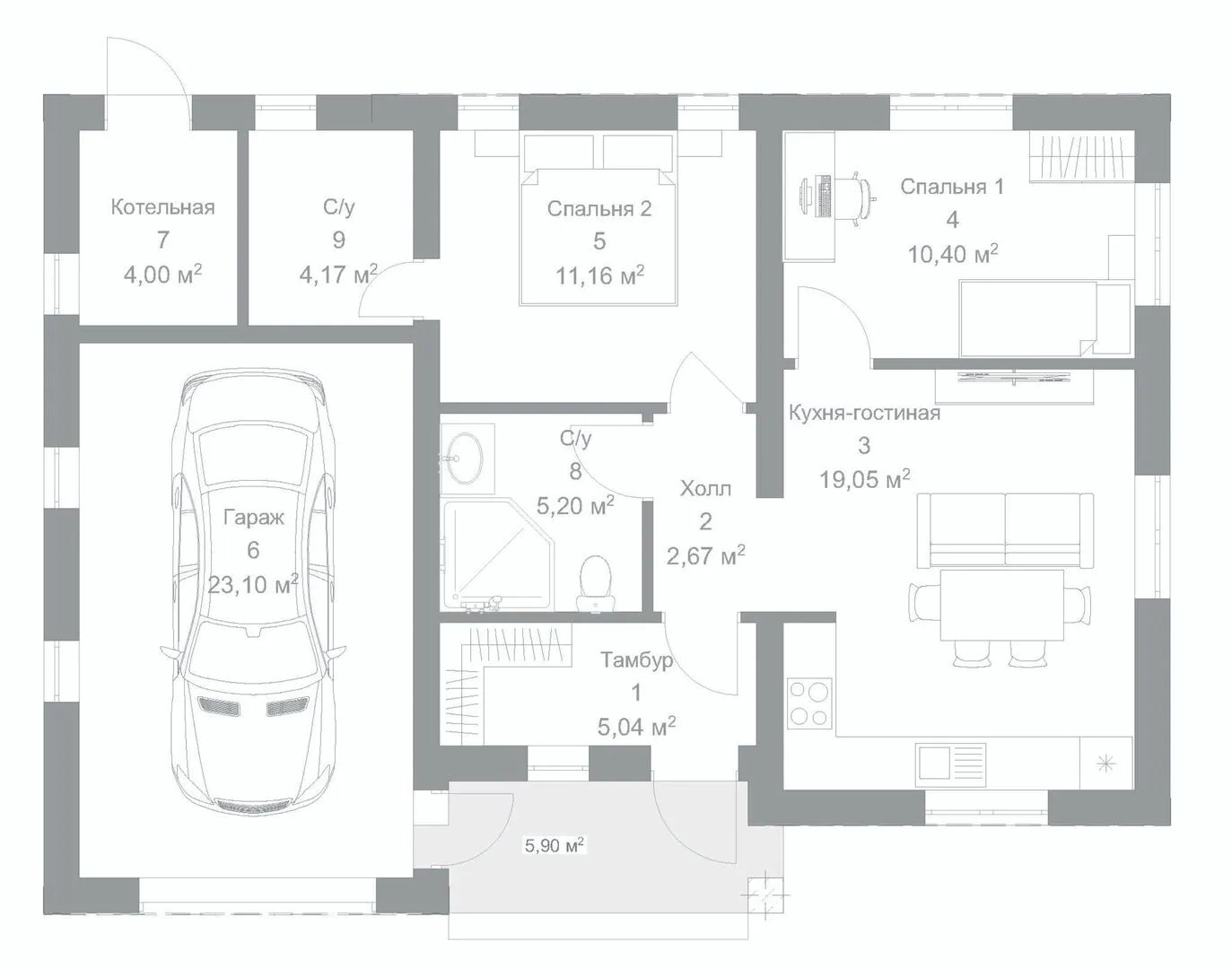 Одноэтажный дом с 2 спальнями и гаражом "Джулия"