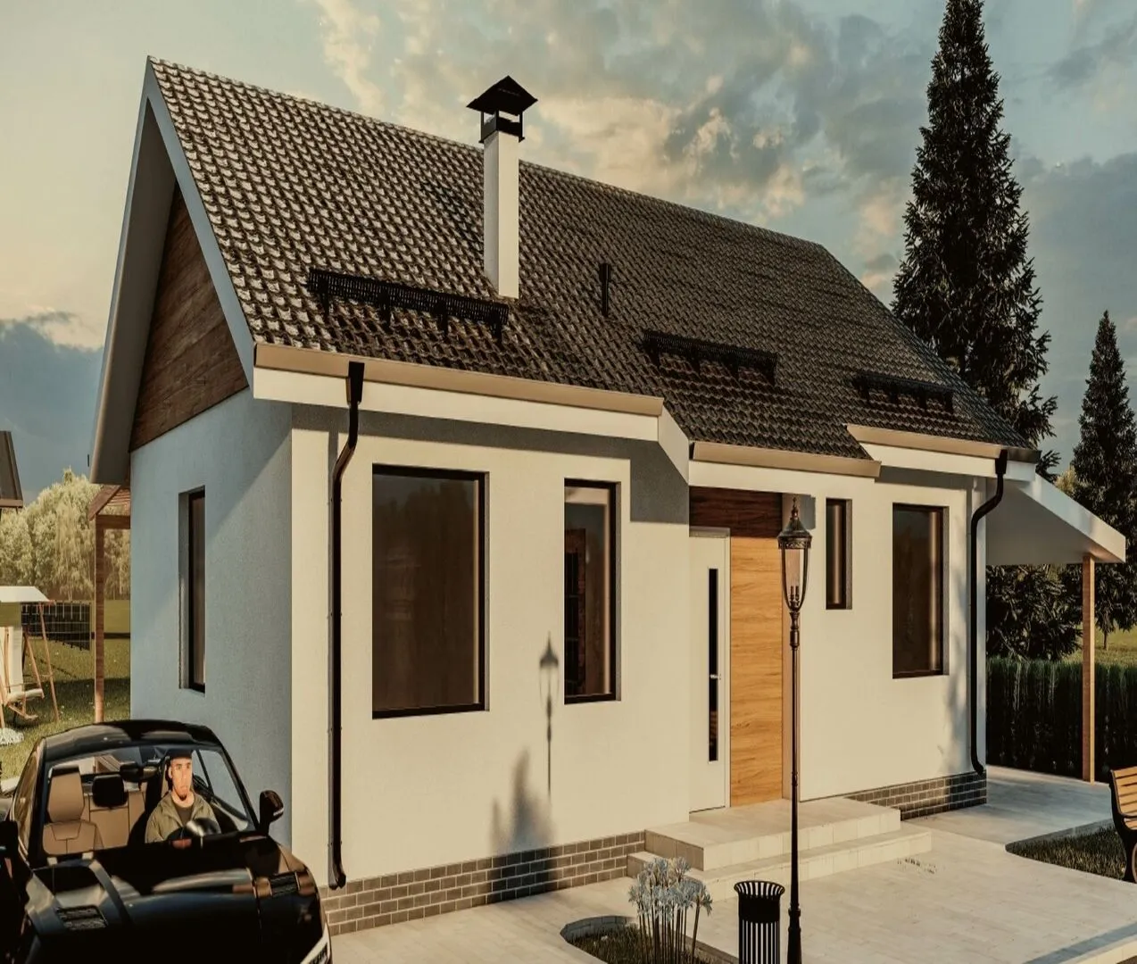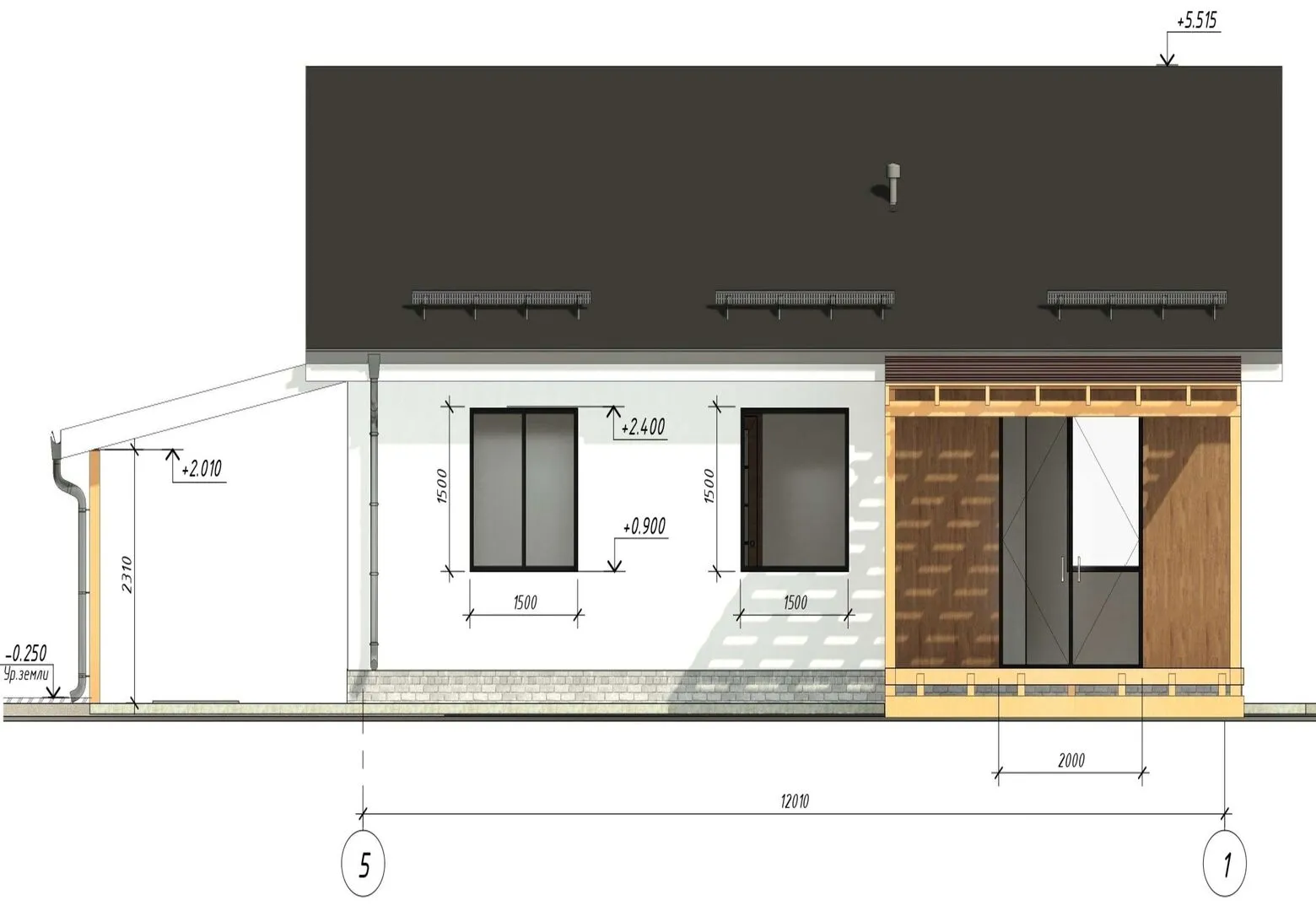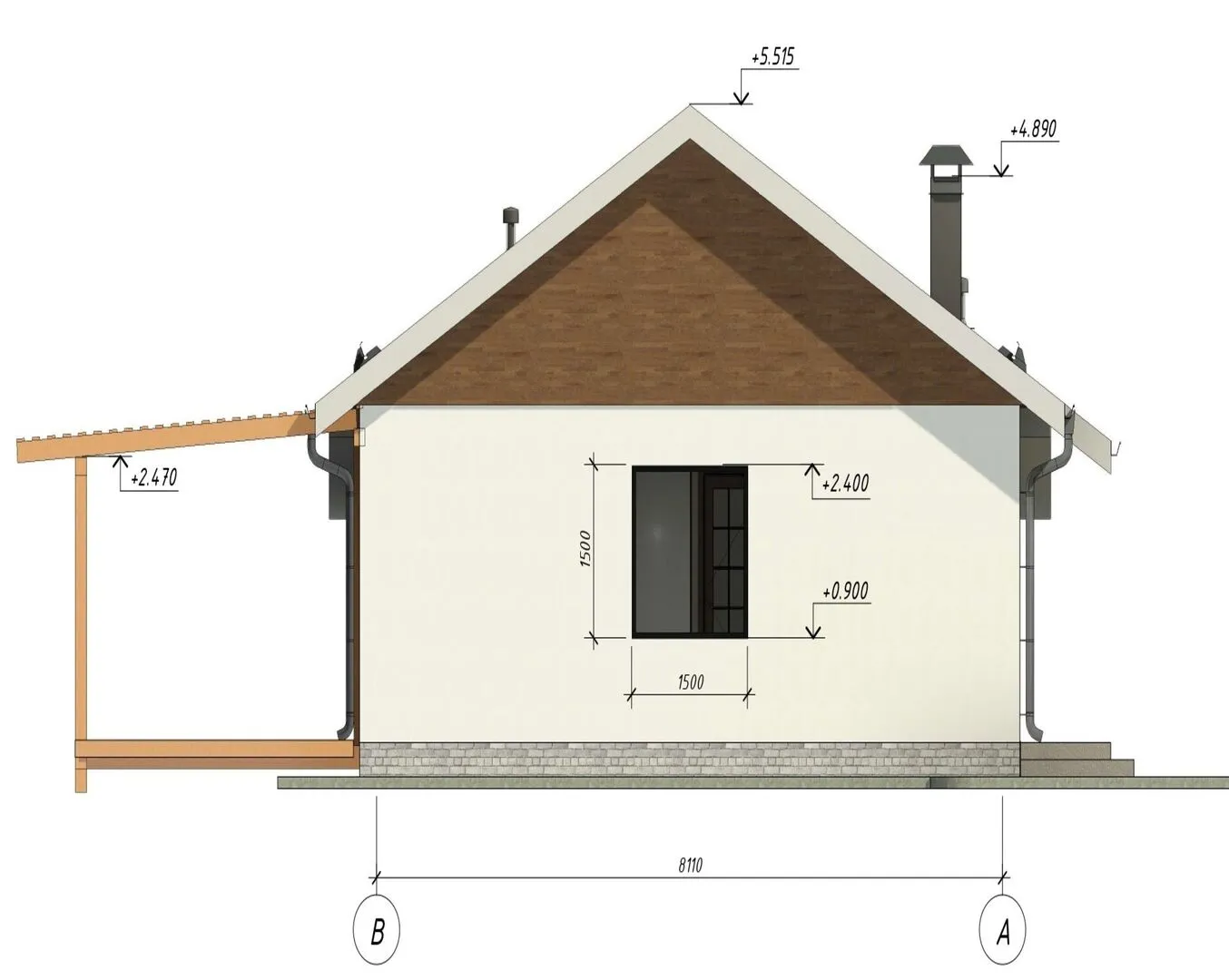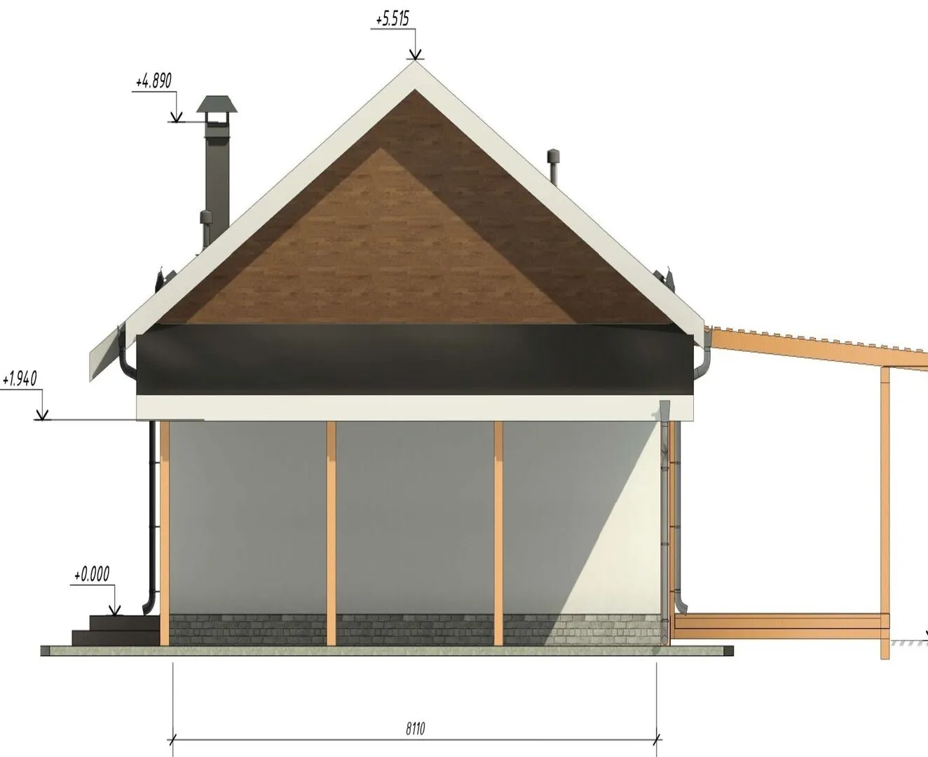 Одноэтажный дом с двухскатной кровлей