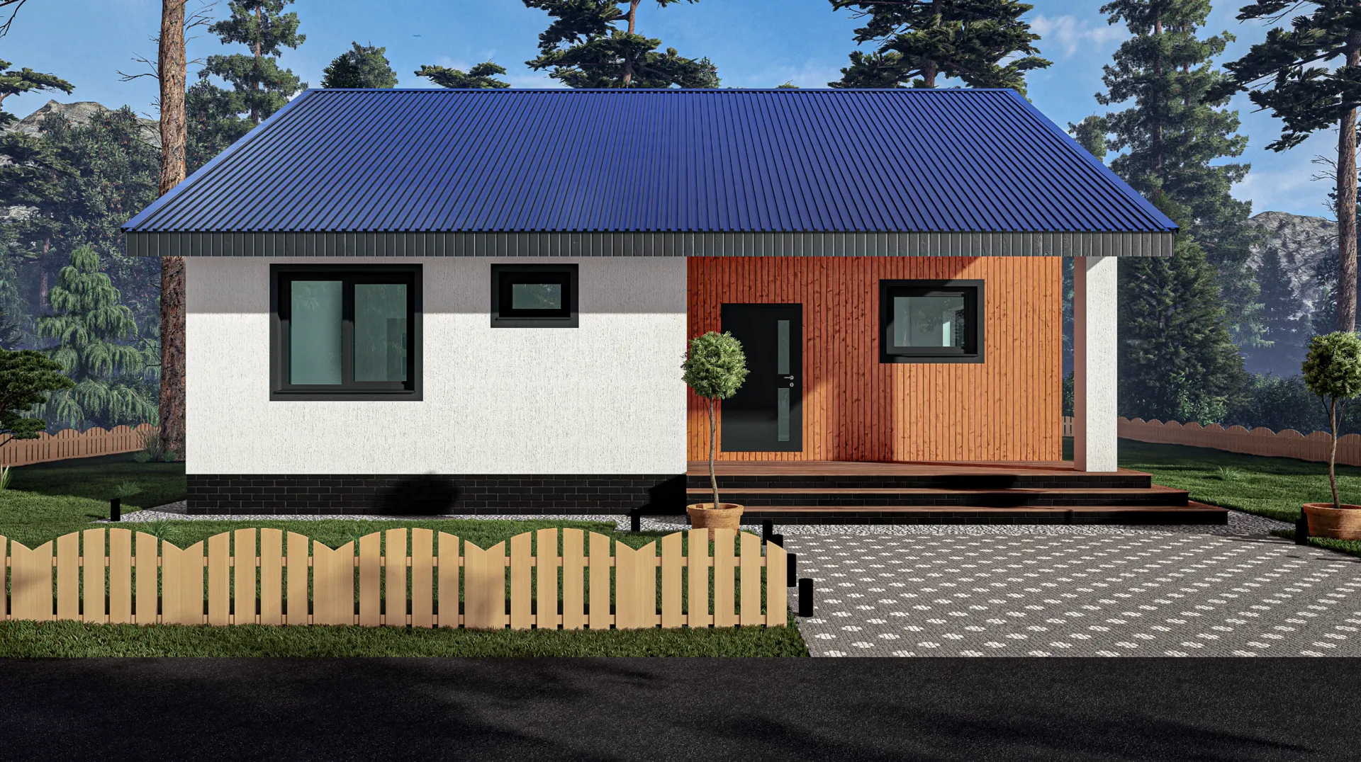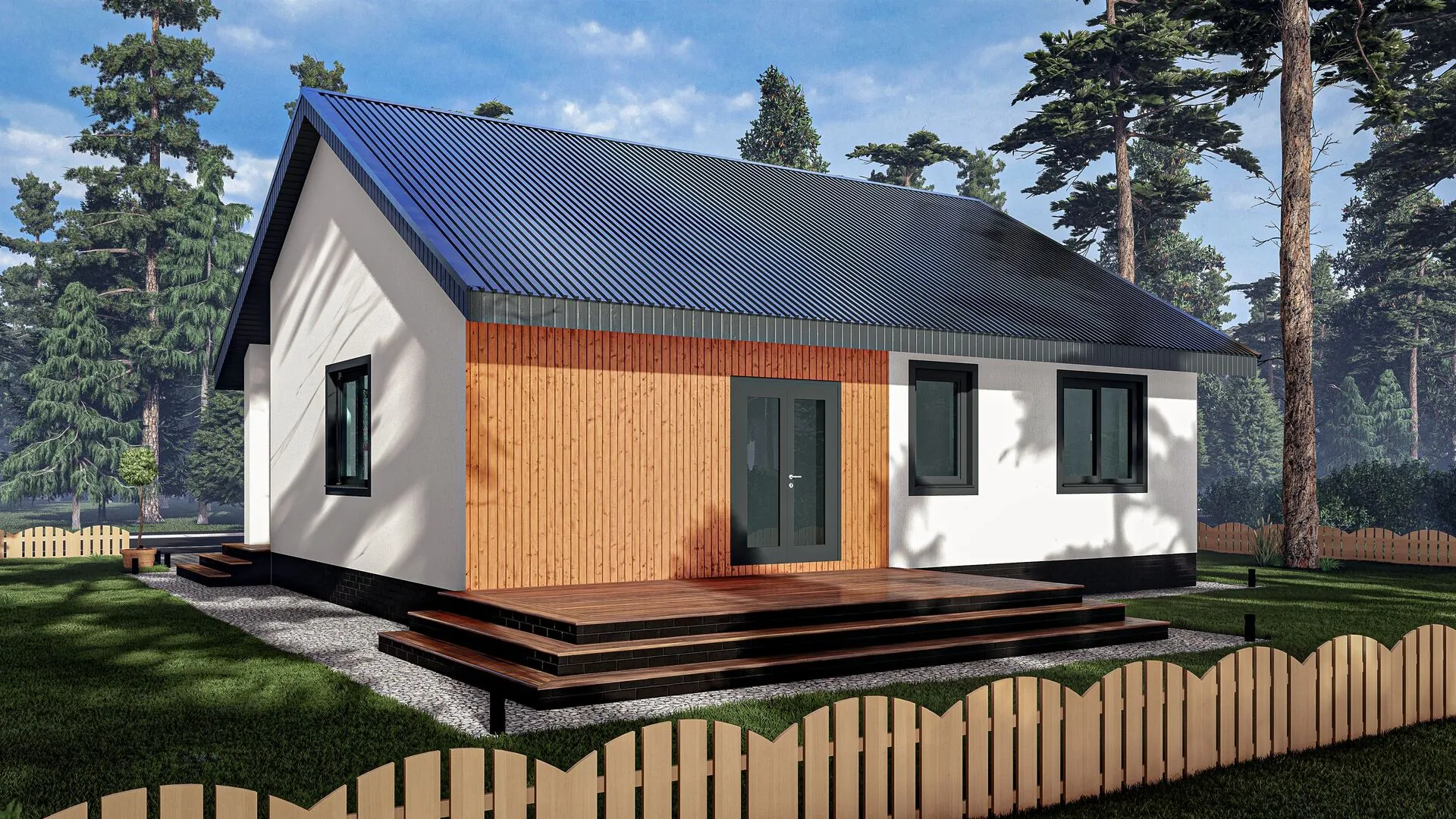Одноэтажный дом с двумя спальнями и крыльцом