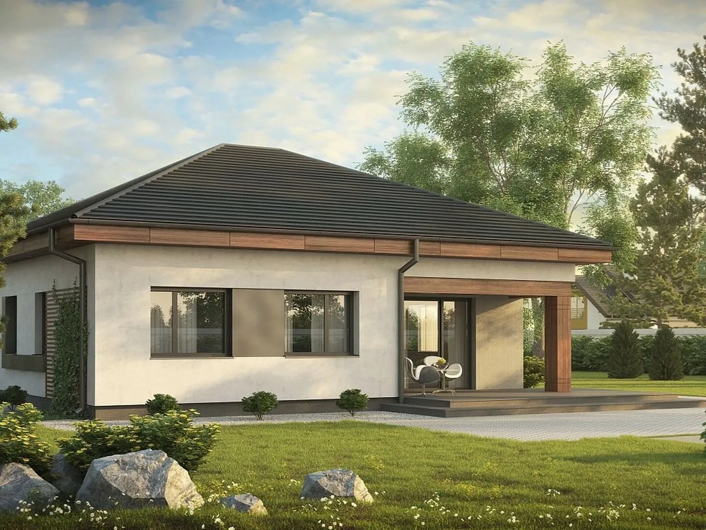 Одноэтажный дом с террасой ФЛАГМАН-135