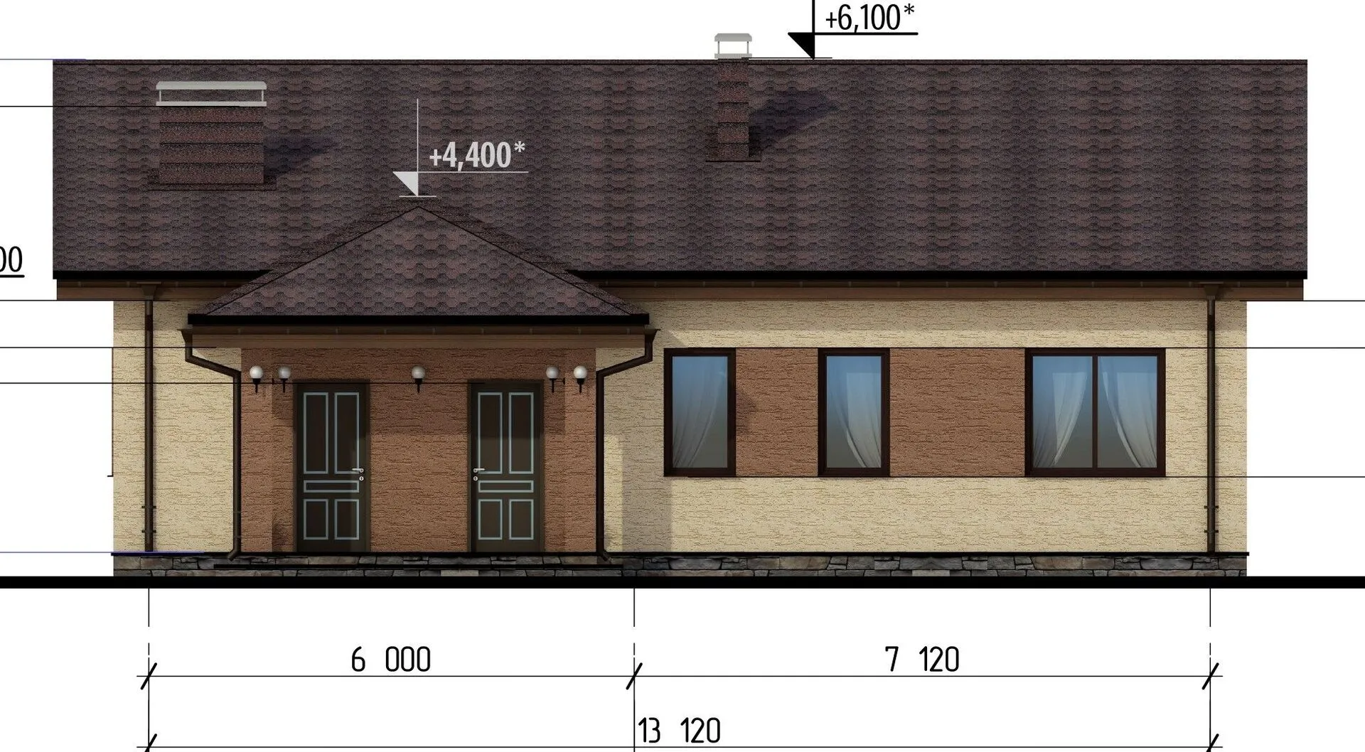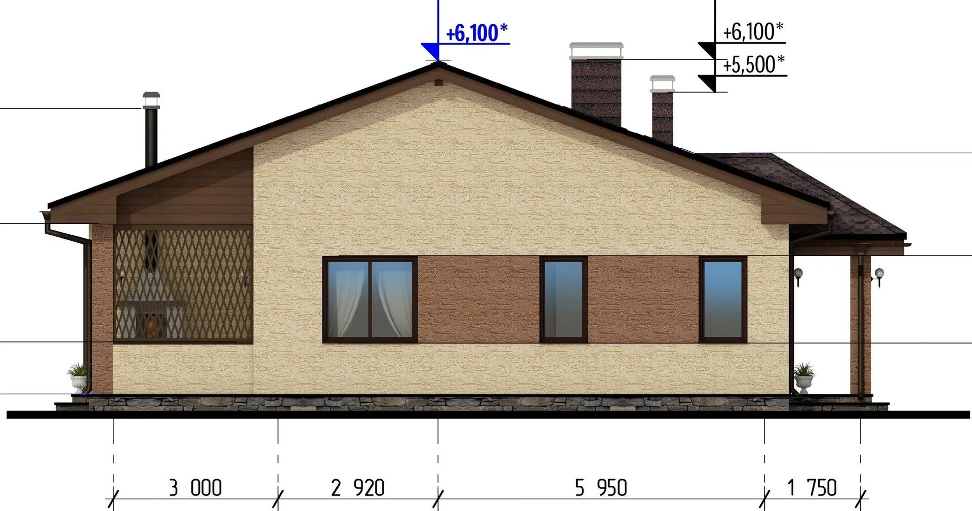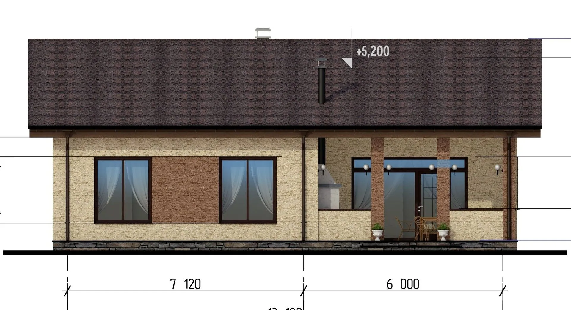 Заказать конусльтацию по:Одноэтажный дом с террасой В-127-3