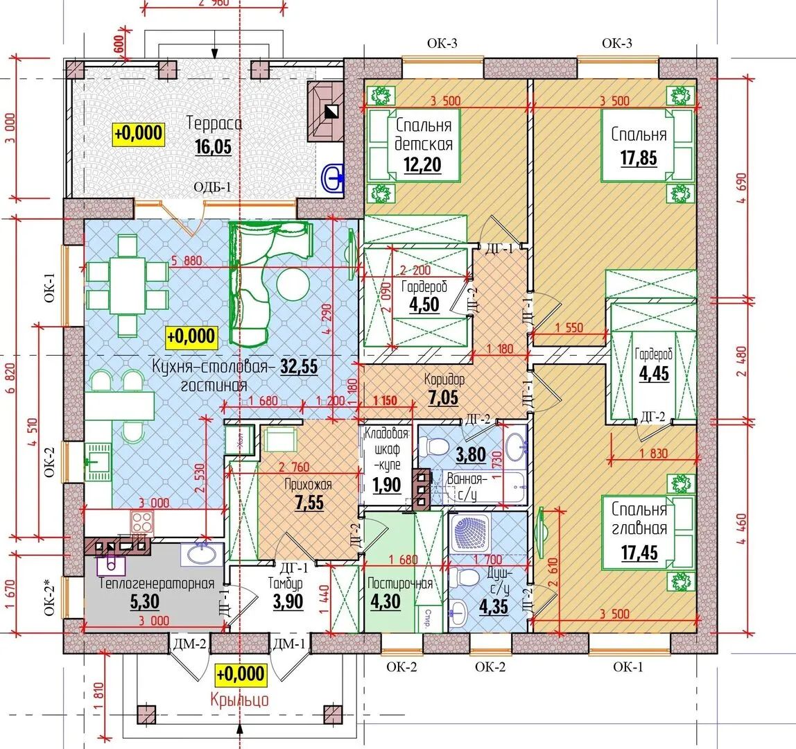 Одноэтажный дом с террасой В-127-3