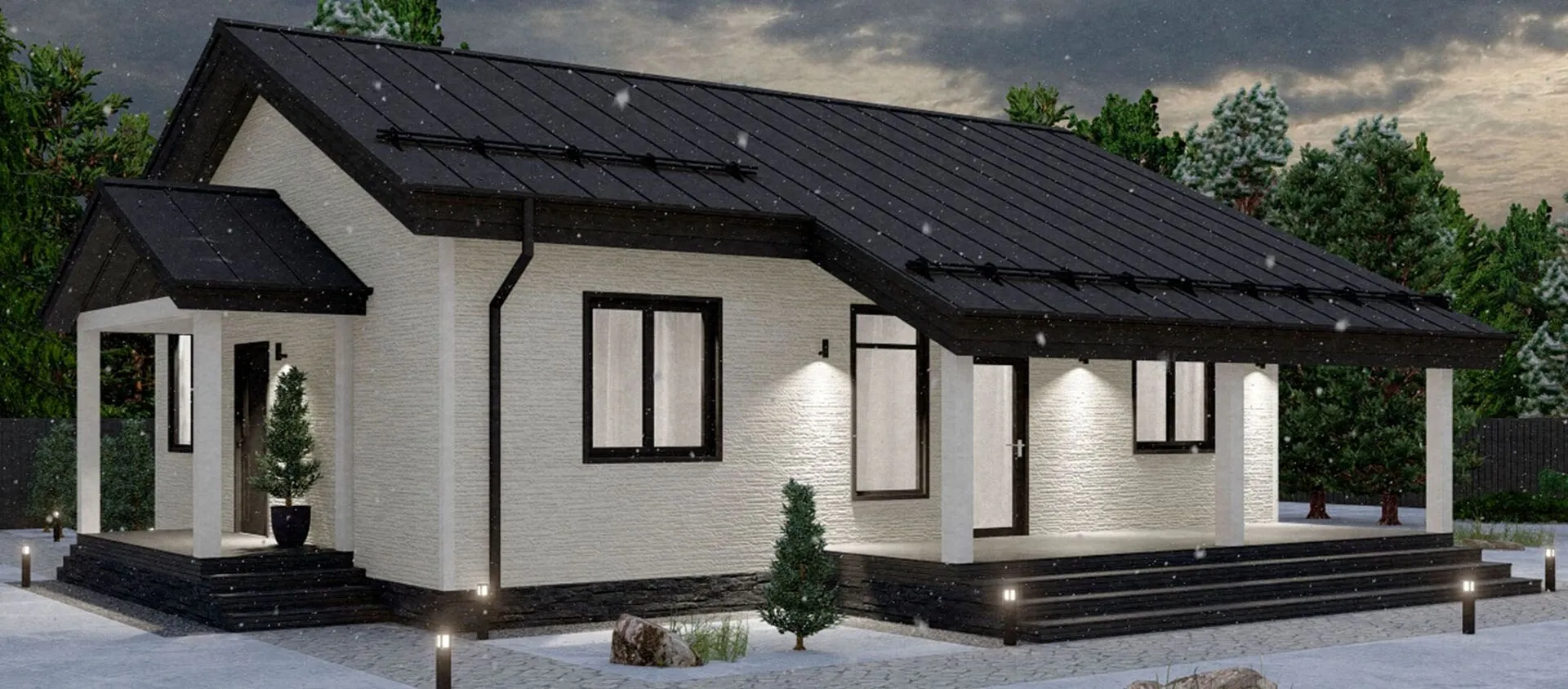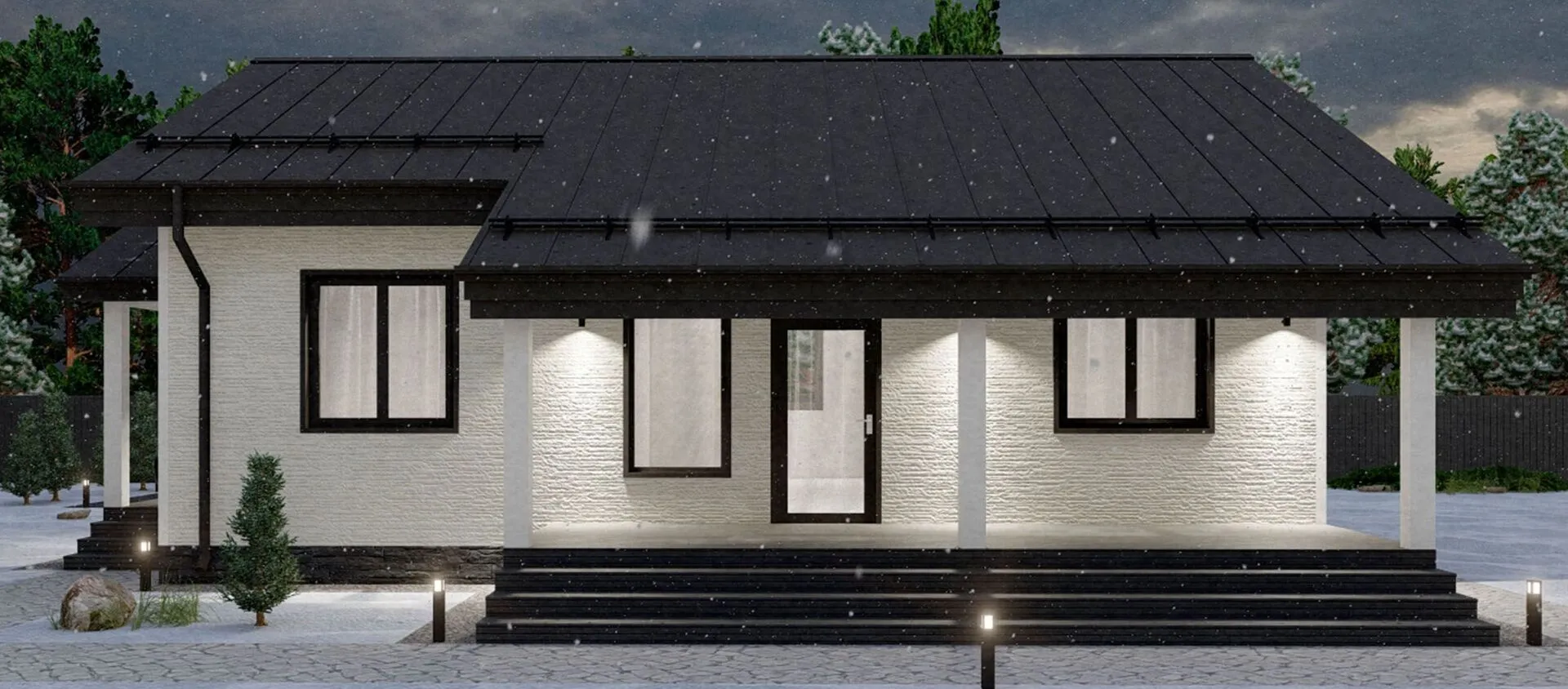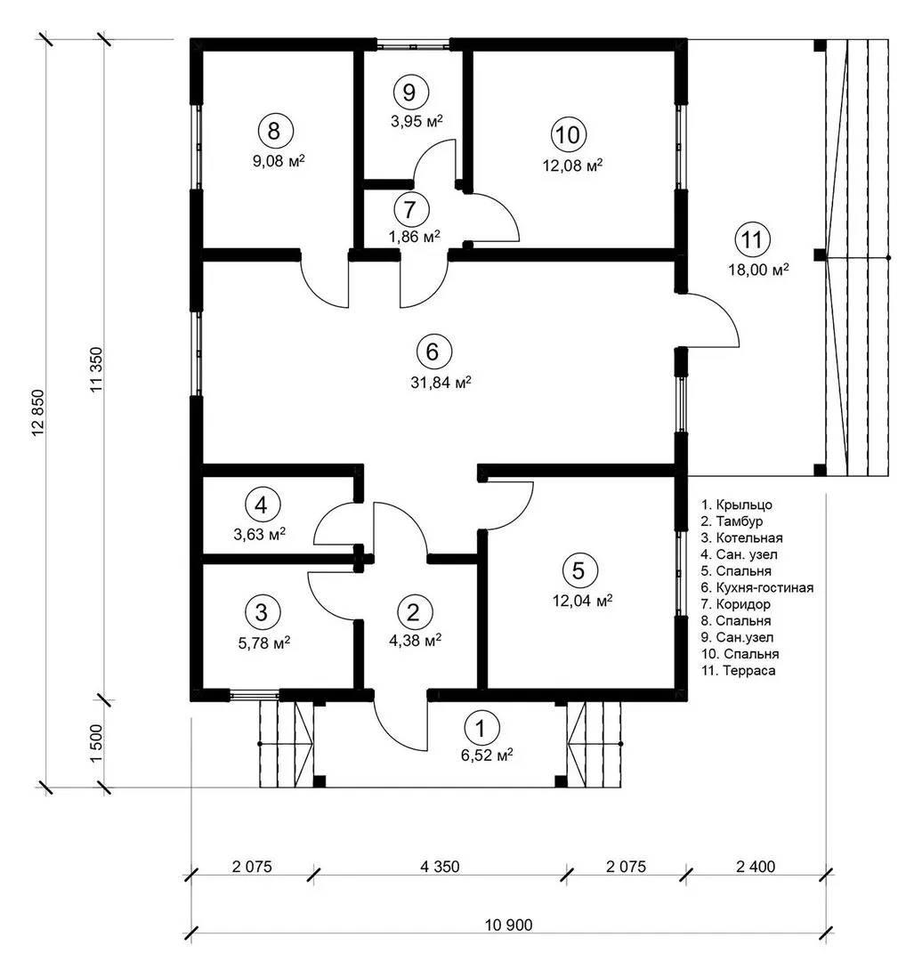 Одноэтажный дом с тремя спальнями и террасой. Проект 44-23КД