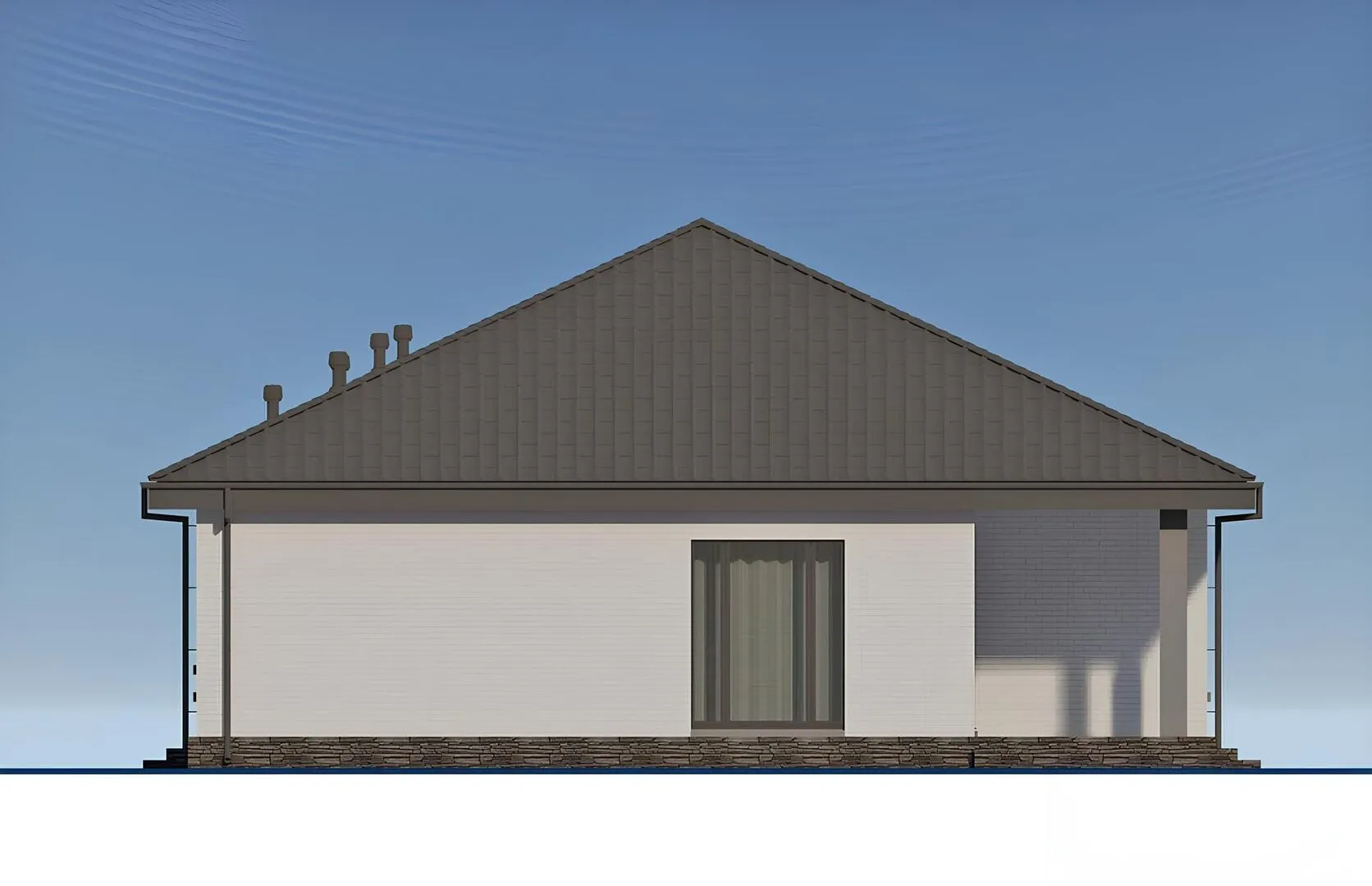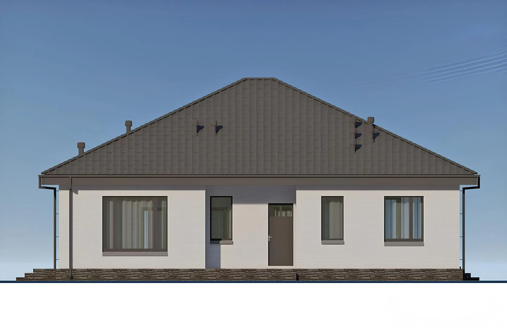 Заказать конусльтацию по:Одноэтажный дом с тремя спальнями и террасой