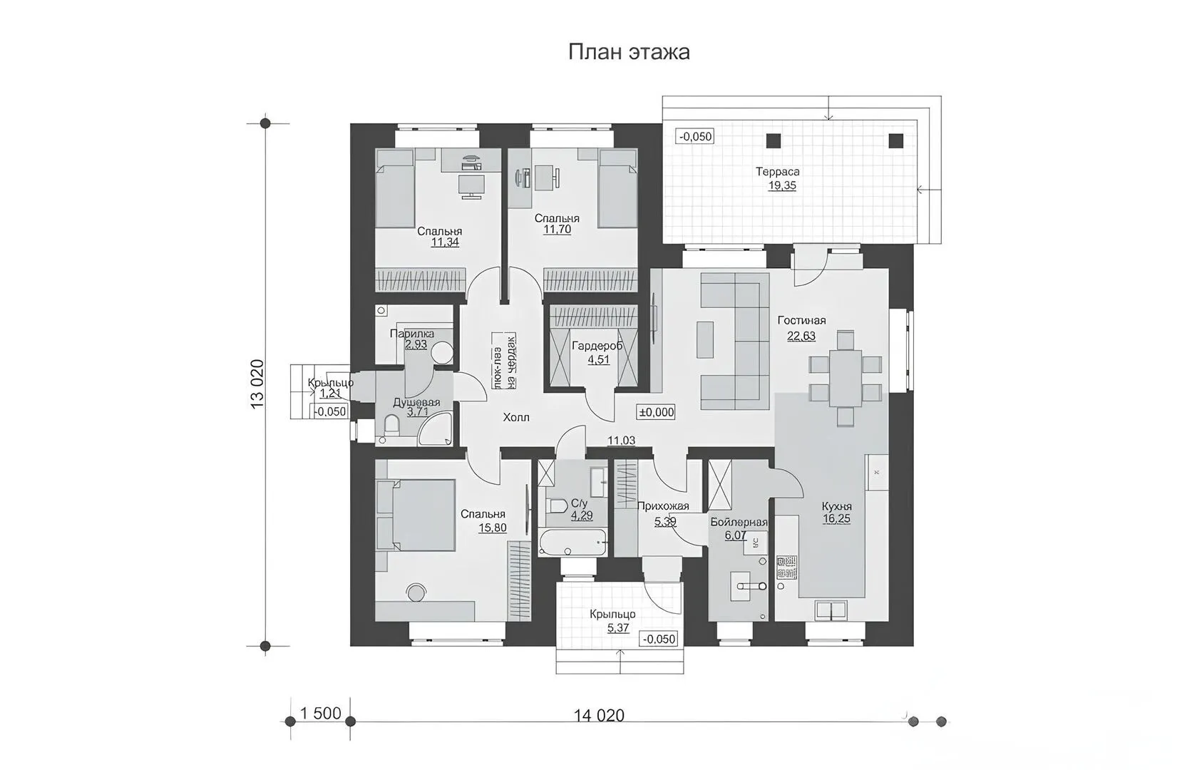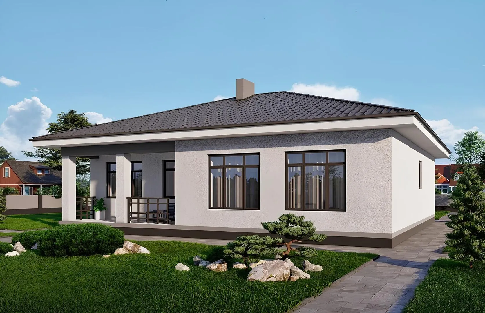 Одноэтажный дом с тремя спальнями и террасой