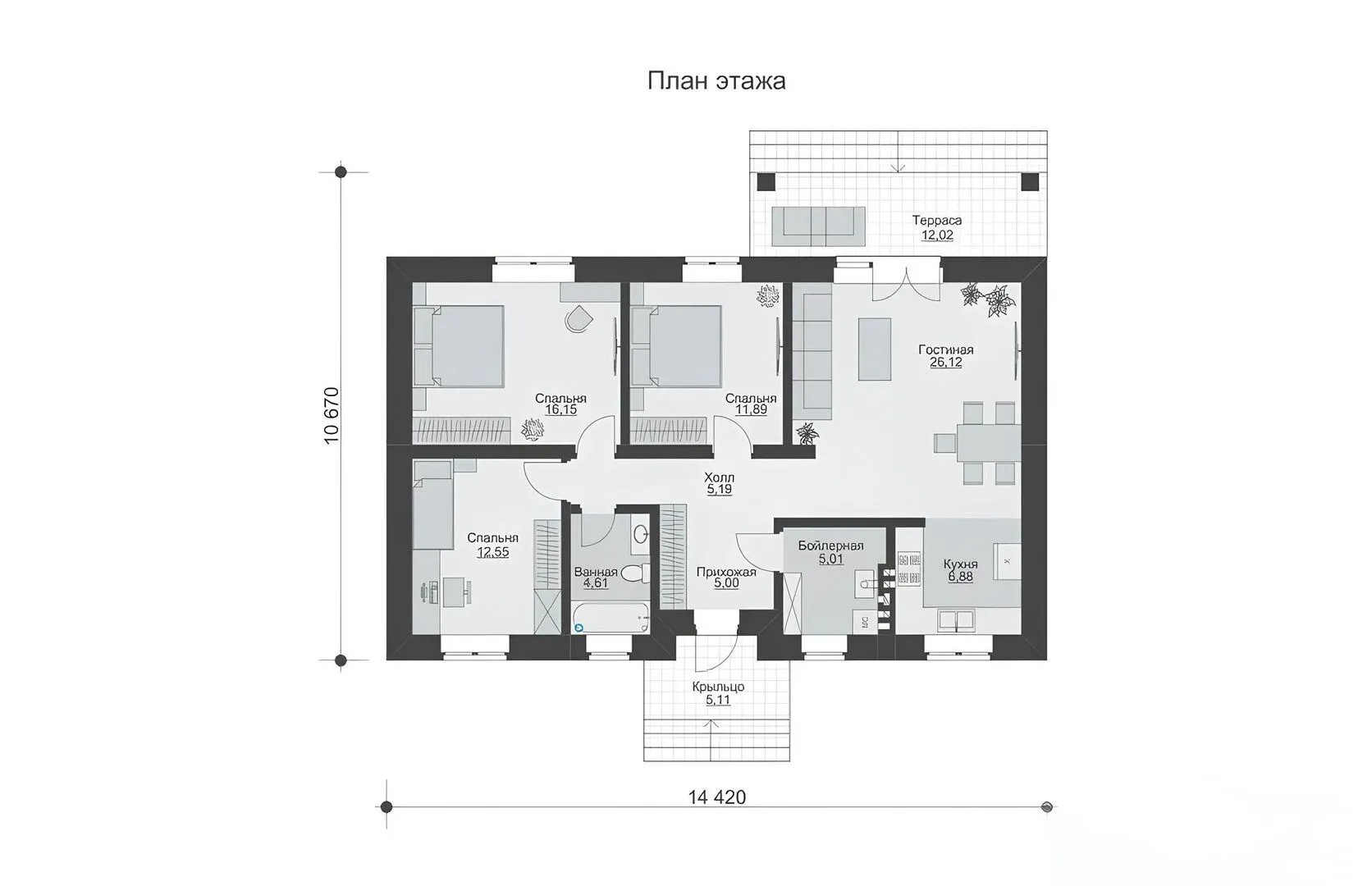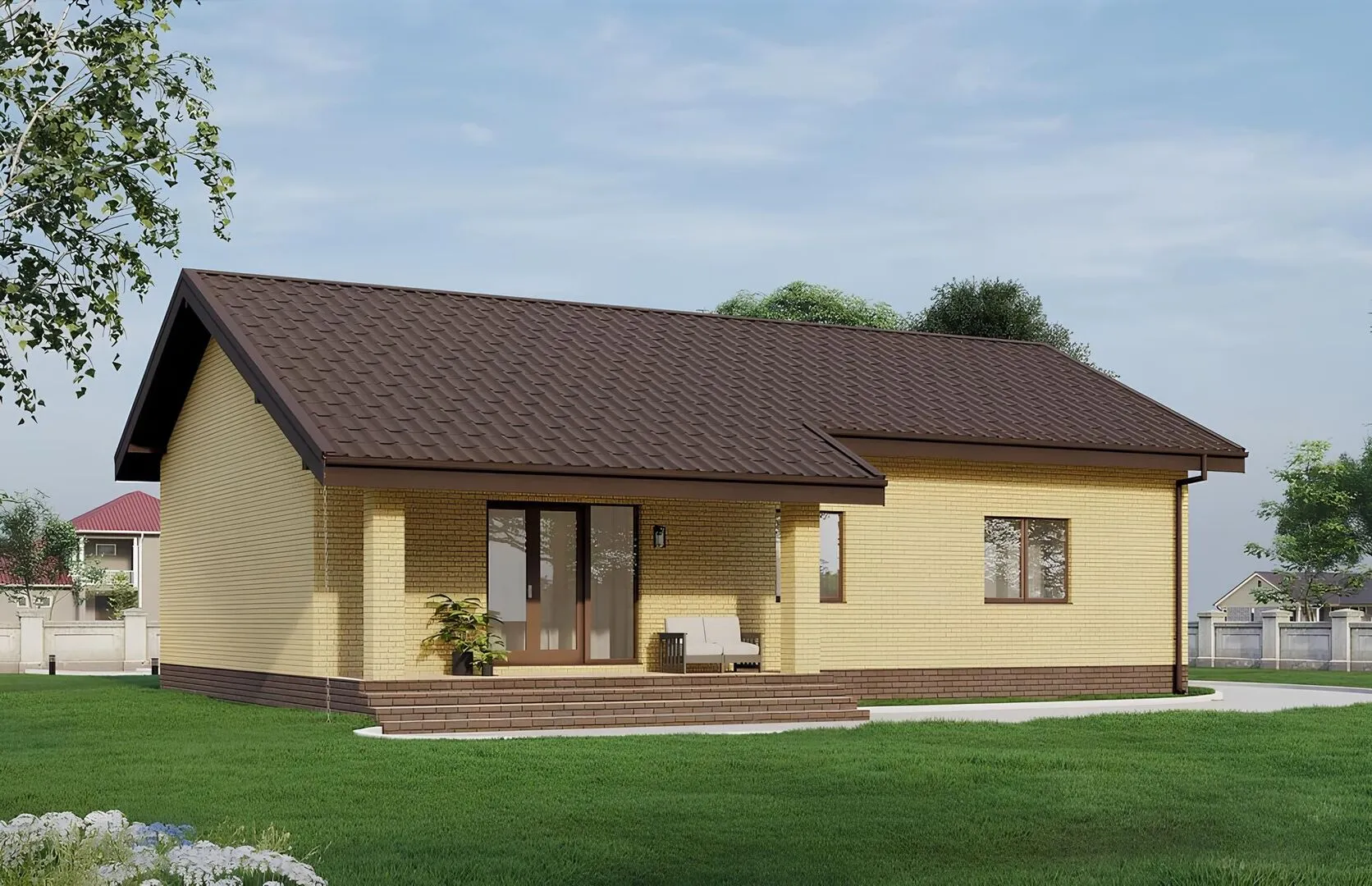 Одноэтажный дом с тремя спальнями и террасой