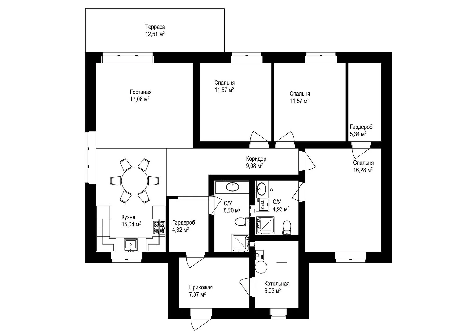 Одноэтажный дом со смартспальней, двух детских, террасой и котельной