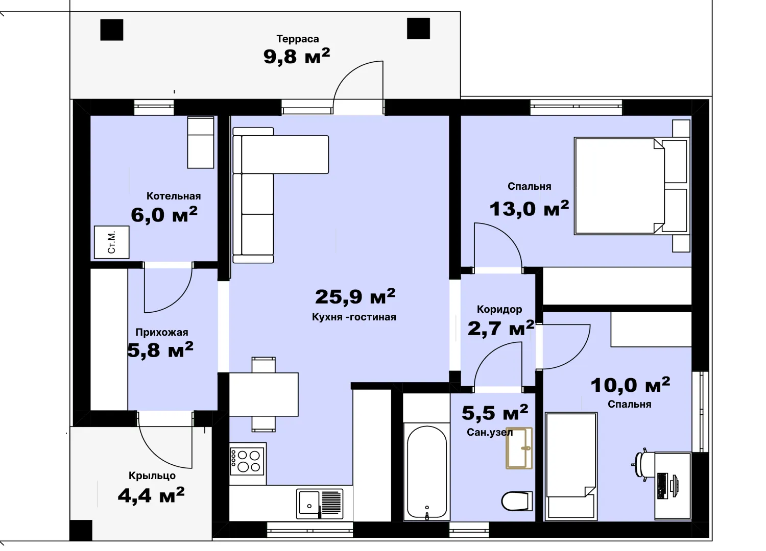 Одноэтажный дом Уран 88