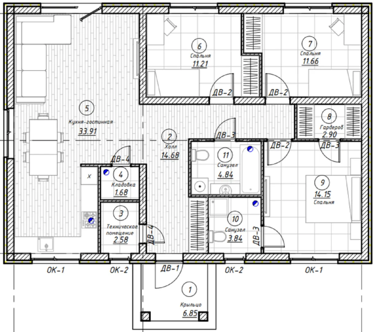 Одноэтажный дом Волков