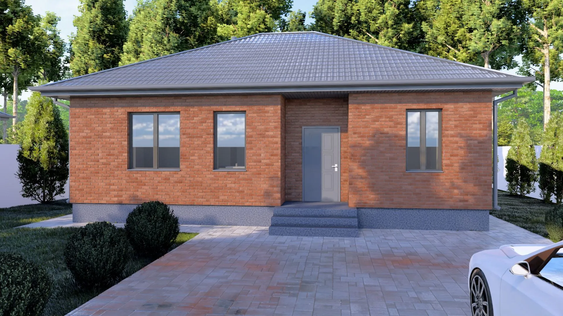 Одноэтажный кирпичный дом STANDART - 99 m2 Красный облицовочный кирпич