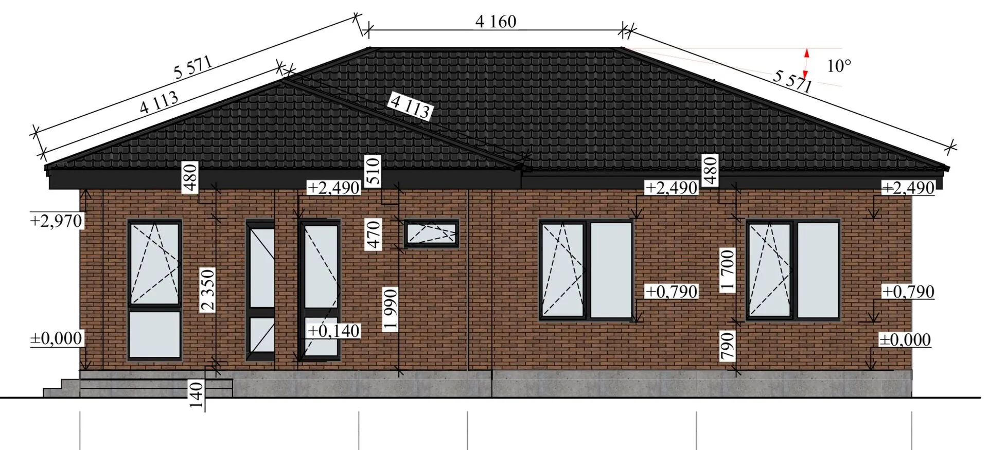 Одноэтажный кирпичный дом ТП-119