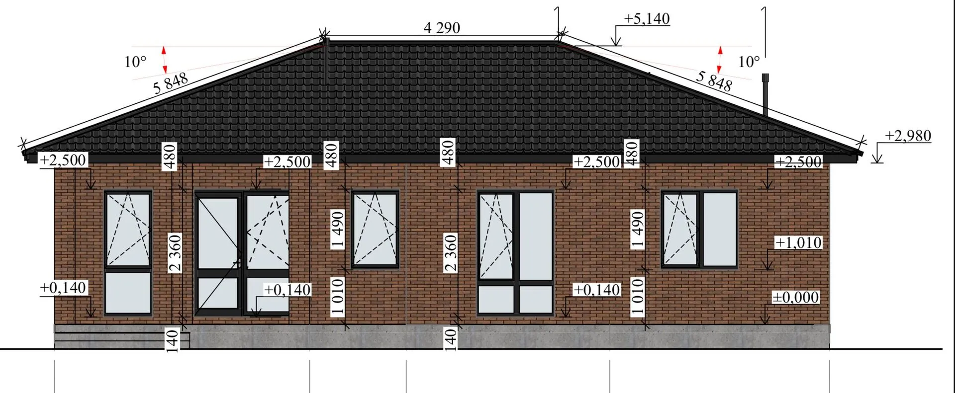 Заказать конусльтацию по:Одноэтажный кирпичный дом ТП-128