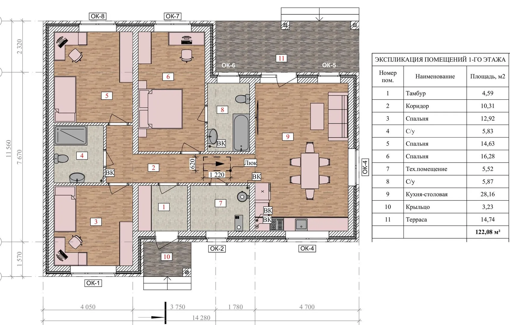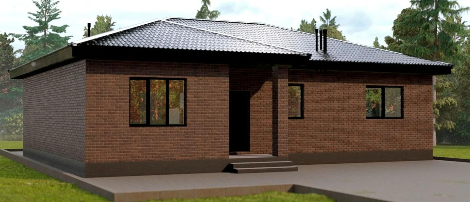 Одноэтажный кирпичный дом ТП-128