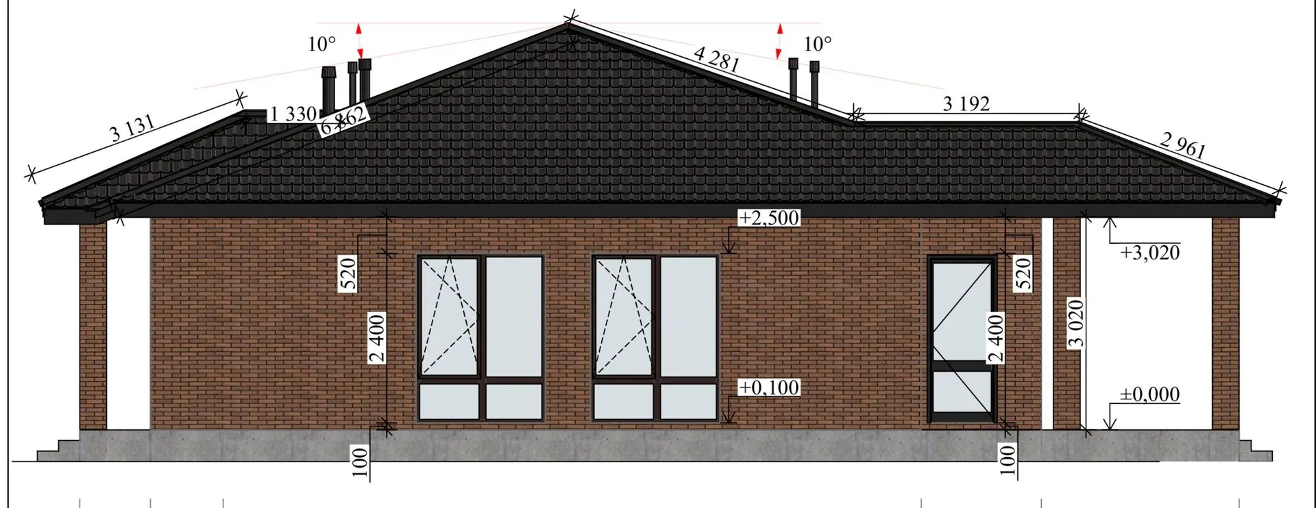 Одноэтажный кирпичный дом ИП-165