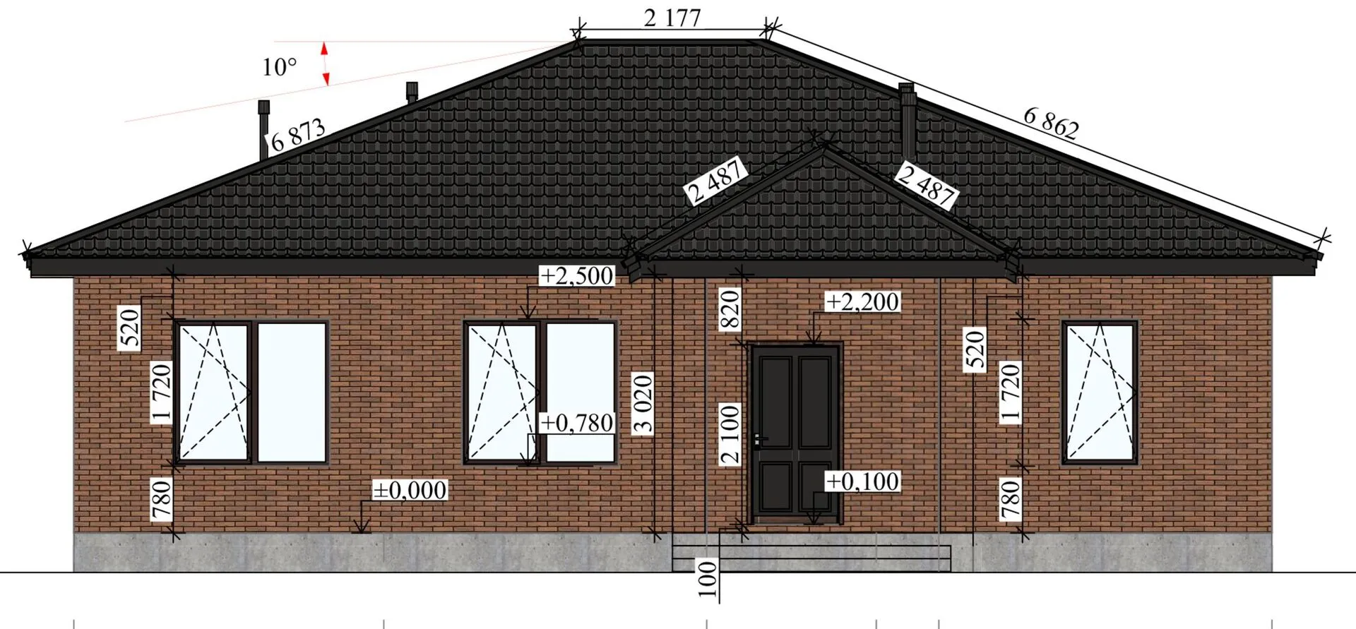 Заказать конусльтацию по:Одноэтажный кирпичный дом ИП-165
