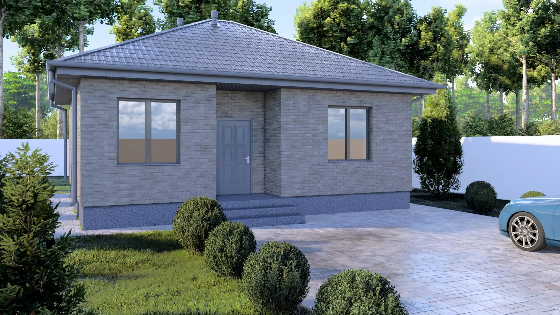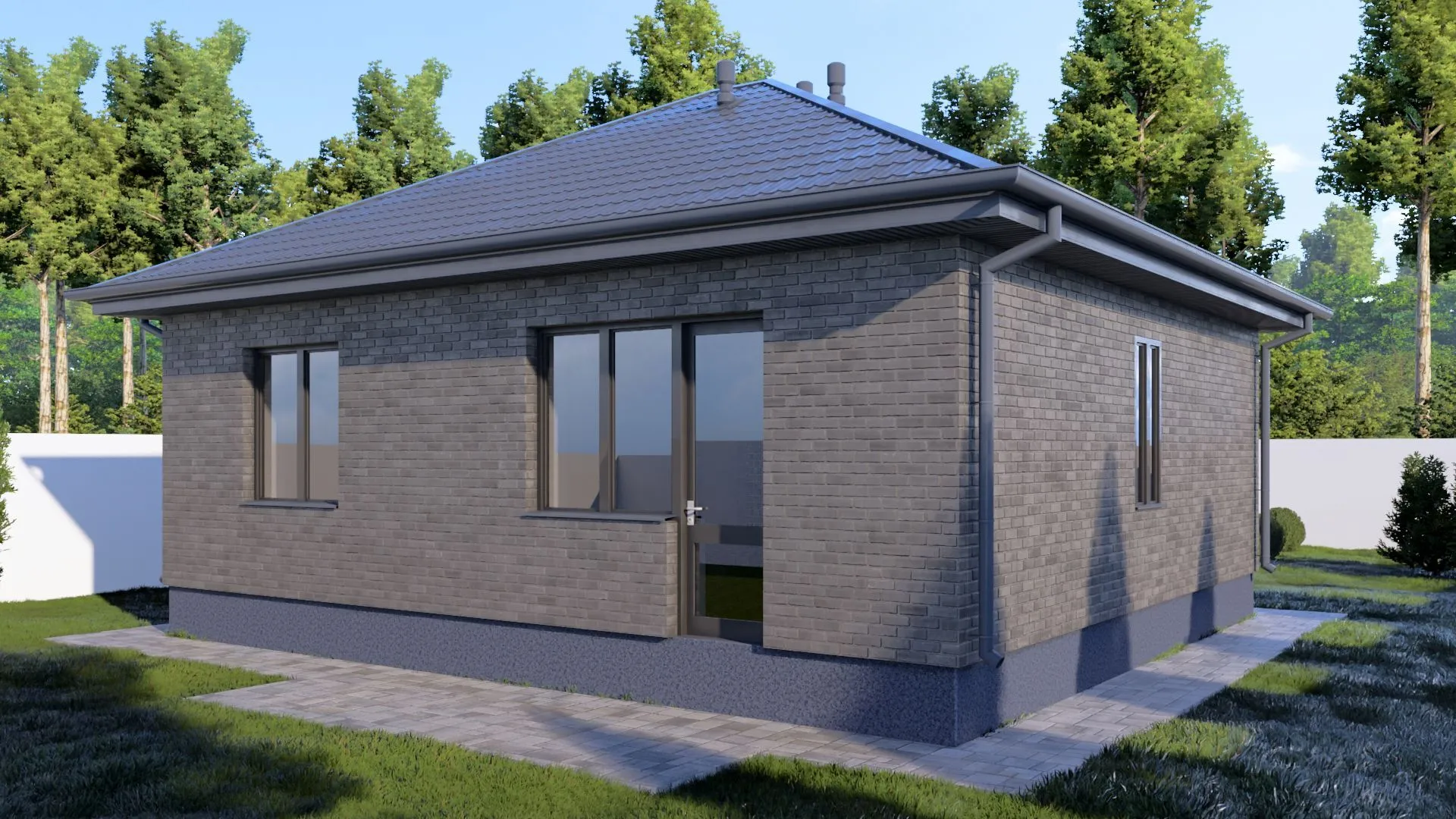 Одноэтажный кирпичный дом LITTLE - 78 m2 (Серый облицовочный кирпич)