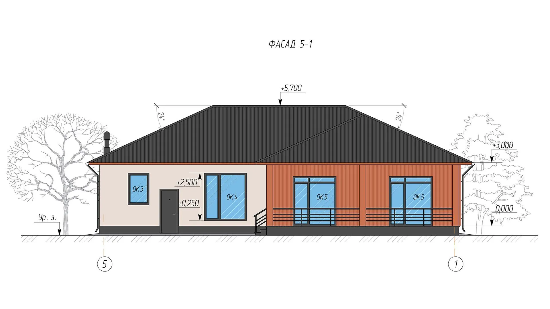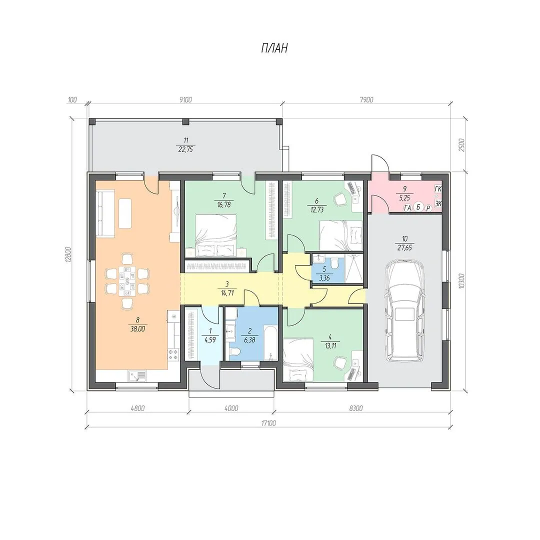 Одноэтажный проект с гаражом GRADE-2+