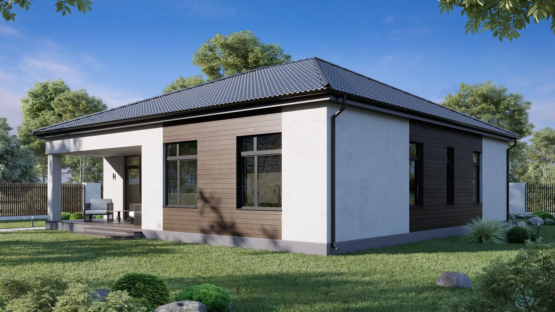Одноэтажный проект с террасой "Росса" 116 кв.м.