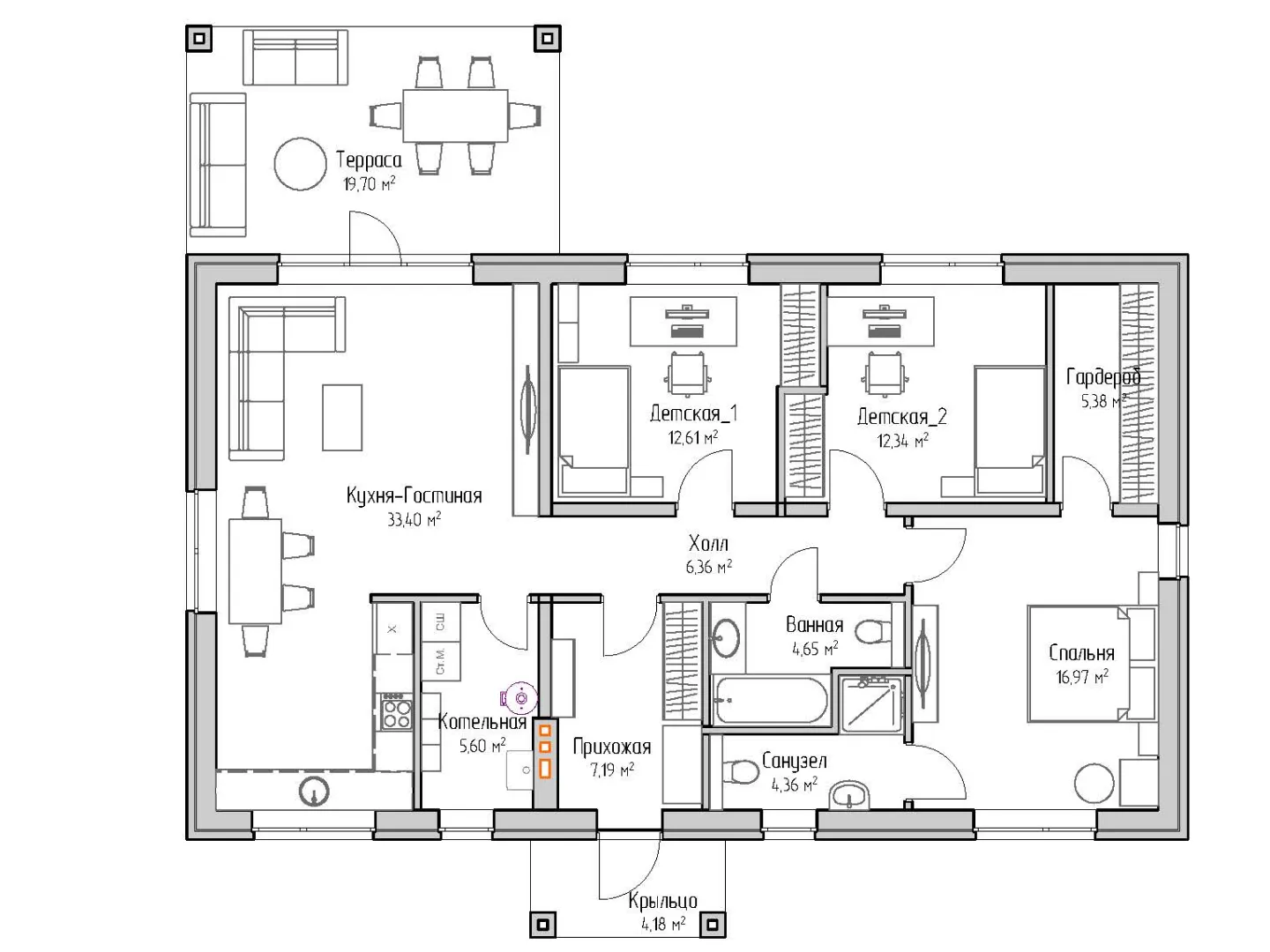 Одноэтажный загородный дом DM-137