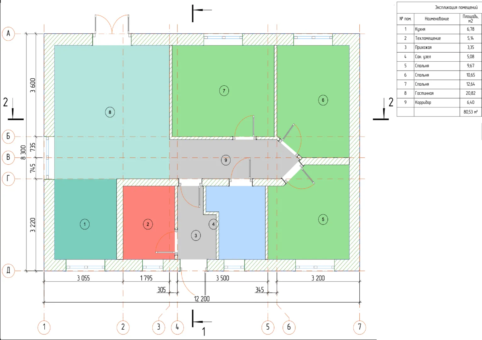 Одноэтажный жилой дом с тремя спальнями