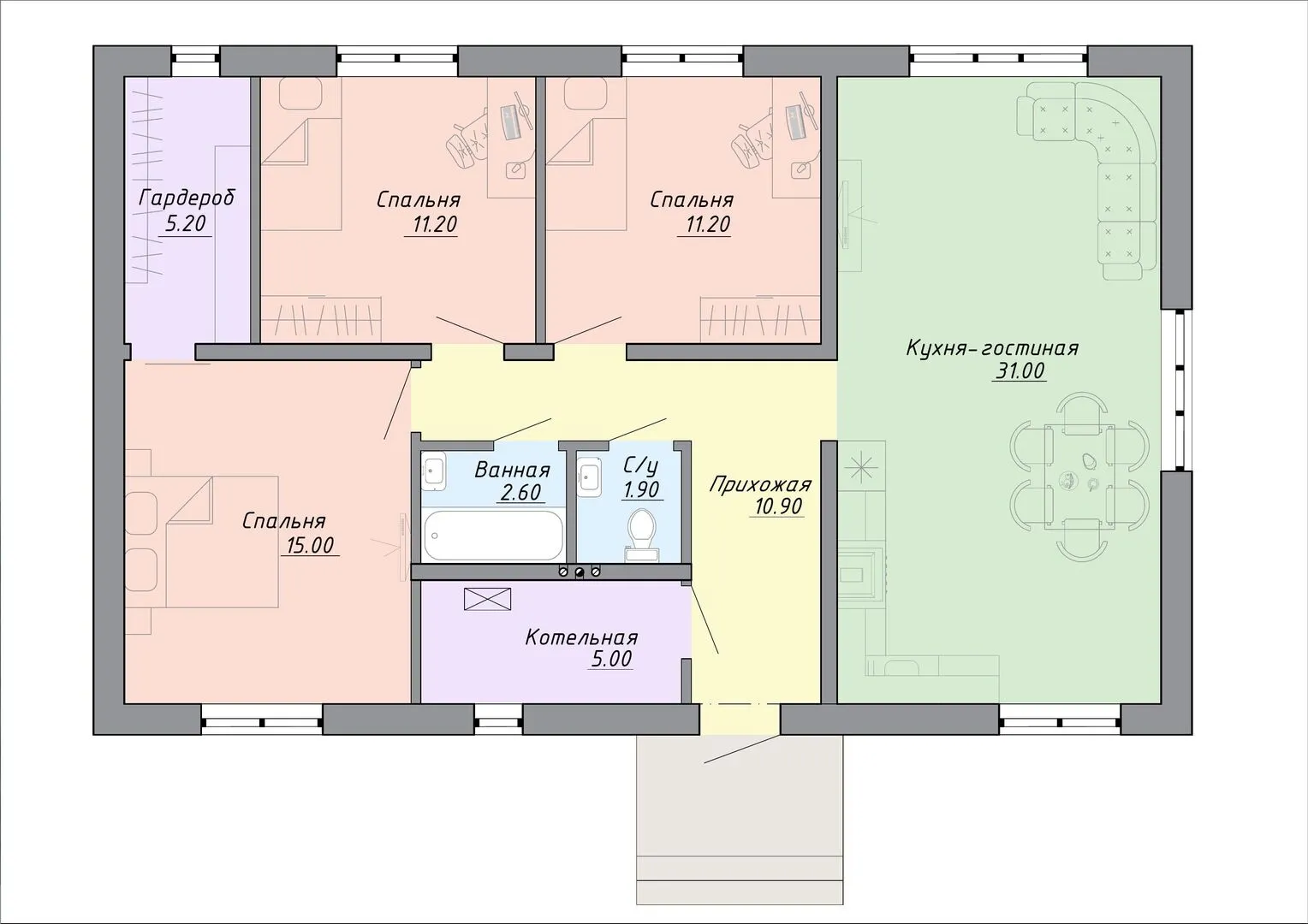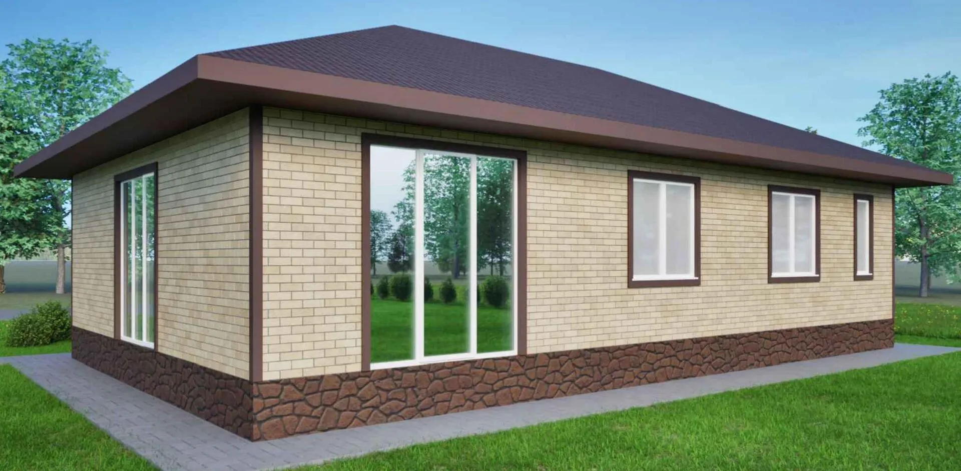 Одноэтажный жилой дом с тремя спальнями "Соловьевка"