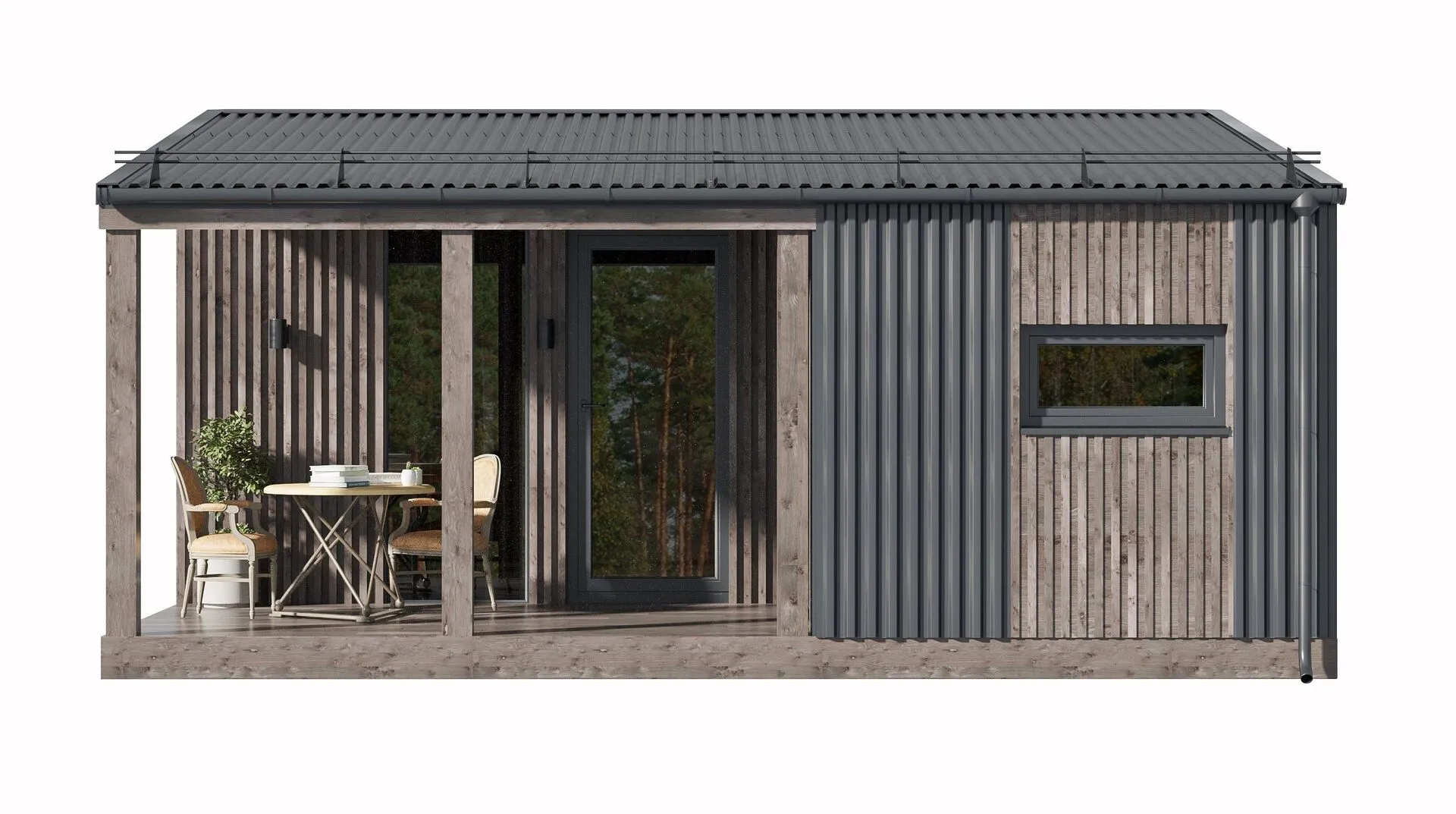 ### Уютный коттедж в стиле «Барнхаус» С первого взгляда в этот одноквартирный дом в стиле барнхаус врезается ощущение тепло и простоты. В деревянной каркасной конструкции наружных стен сохранена природная текстура и душевная атмосфера, а двухскатная крыша подчёркнёт традиционный фасад, придавая дому вневременной шарм. Простая планировка на одном надземном этаже позволяет вам насладиться каждым уголком без лишних перегородок, а круглогодичная адаптация делает его идеалом как для зимних семейных праздников, так и для летних вечеров на открытой террасы. ### Теплый уют и современная практичность Гостиная открыта к просторной террасы, где можно проводить встречи с близкими, разглядывая закат солнца над зелёными участками вашего участка. Внутренние стены, изящно обрамленные деревянными панелями, создают ощущение внутренне светлого и «домашнего» пространства, а отсутствие балконов, лоджий и приобщённых гаражей позволяет полностью насладиться внутренним комфортом без лишних перегрузок. Весь дом пропитан естественными материалами, а простая, но функциональная планировка гарантирует простое управление пространством - от семейного уютного уголка до просторной рабочей зоны, готовой к работе и хобби. В завершение каждый аспект этого дома продуман для того, чтобы вы чувствовали себя дома здесь всегда, независимо от времени года. Этот барнхаус – ваш персональный уголок, где каждая деталь говорит о комфорте, простоте и тепле человеческого пространства.