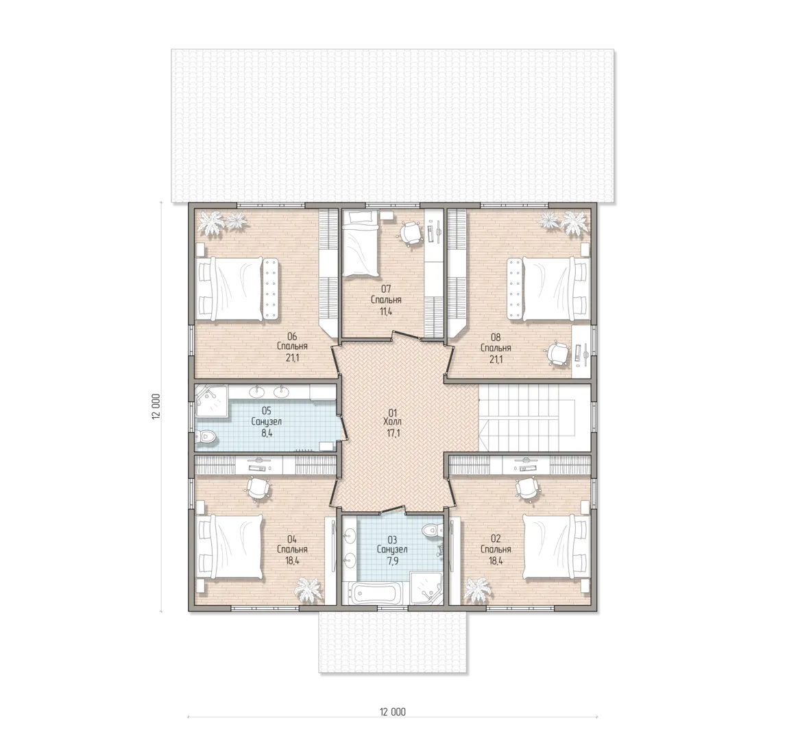 **Петергоф** – это ваш новый уголок уюта, где классика встречается с современными технологиями. На двустайной планировке располагается пространство, способное обогревать и вдохновлять круглый год: большие окна впускают солнечный свет, а теплообменные SIP‑панели обеспечивают надёжную теплоизоляцию и комфорт независимо от погоды. Это дом, в котором можно жить, отдыхать и радоваться каждому дню. Отдельный акцент сделан на просторных чердачных помещениях, которые превращаются в уютные спальни, рабочие кабинеты или небольшие гостиные, а открытая крыша и четыре‑клиффовая (валма) крыша создают ощущение бесконечного пространства и свободы. На крыше располагается терраса: идеальное место для чашки кофе утром и ужина в знойное летнее солнце, а также возможность отдохнуть, глядя на закат. В Петергофе вам не придется искать дорогу и парковку – здесь вы ощутите комфорт каждого мгновения: от легкой подъёмной подъёма до идеальной акустики в отдалённых комнатах. Это дом, в котором вы можете быть сами собой — спокойно и свободно, наслаждаясь классическим стилем и современными технологиями.