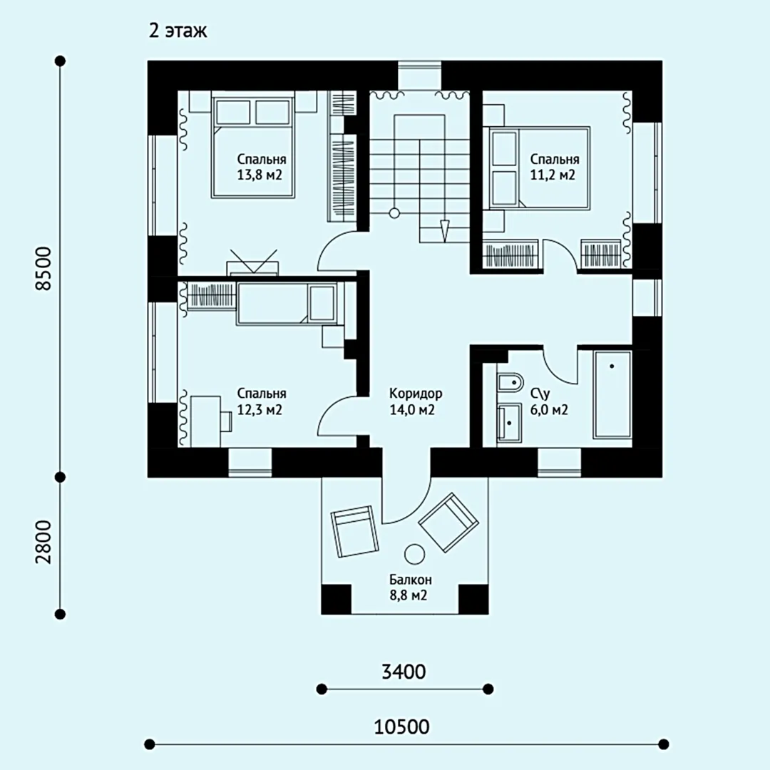 Проект №3 Двухэтажный дом их кирпича
