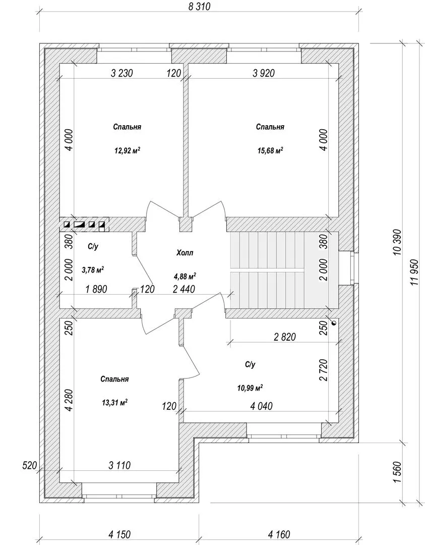 Толщина внутренних перегородок