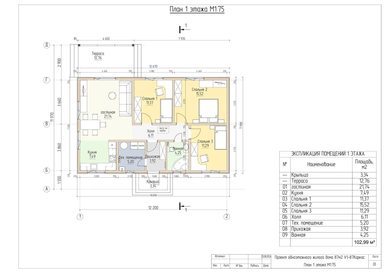 Заказать конусльтацию по:Проект АР V1-87Каркас