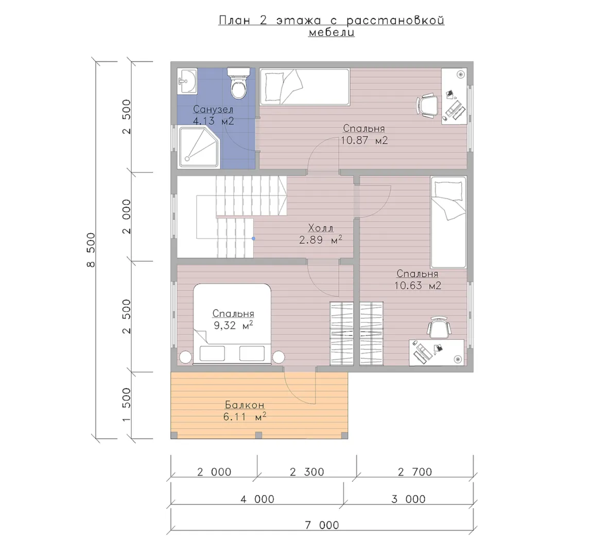 Проект «ДК-23». Каркасный дом 1,5 эт. 8,5х10 с балконом