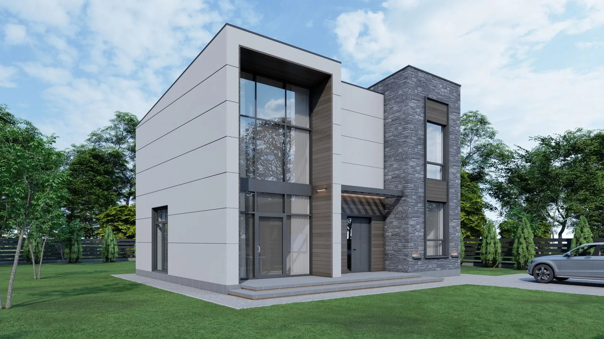 ### Дом „BERGEN“ – Ваш уголок европейской гармонии Вдохновленный классическим европейским дизайном, проект „BERGEN“ сочетает в себе простоту и изысканность. Два надземных этажа создают просторные, светлые интерьеры, где каждая деталь продумана до мелочей. Плоская крыша и керамический блок, покрывающий внешние стены, придают дому современный вид, одновременно защищая от непогоды и создавая элегантный контур. Собственная терраса, открытая после каждого выхода, приглашает насладиться прогулками, растениями и вечерними огнями, при этом сохранённый внутренний уют позволяет круглогодично комфортно жить в этом доме. Простой, но элегантный фасад привлекает взгляд, а отсутствие привилегированных внешних элементов, таких как балконы, позволяет максимально интегрировать жильё в его окружение. Если вы ищете идеальный баланс между европейским стилем, функциональностью и комфортом, «BERGEN» станет вашим домом мечты. Позвольте этому дому стать площадкой для ваших лучших воспоминаний.