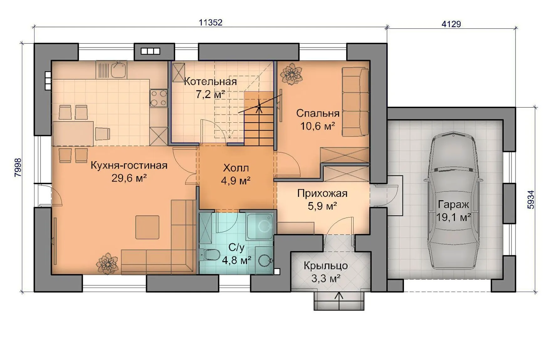 Заказать конусльтацию по:Проект двухэтажного дома №25 (11,3х8,0 м)