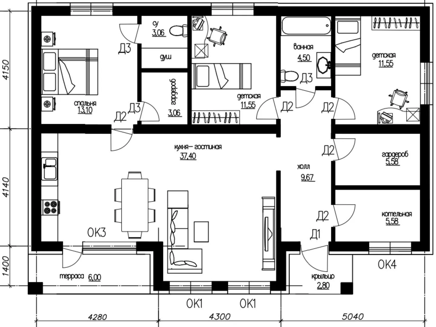 Проект одноэтажного дома Ново Отрадное