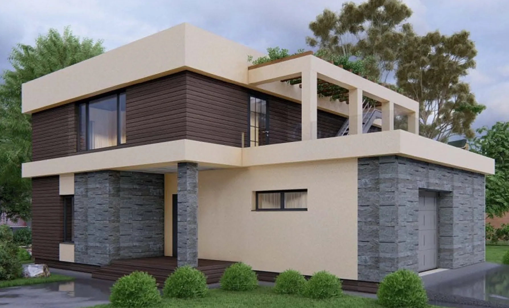 Проект загородного дома с плоской кровлей в стиле хайтек S-228