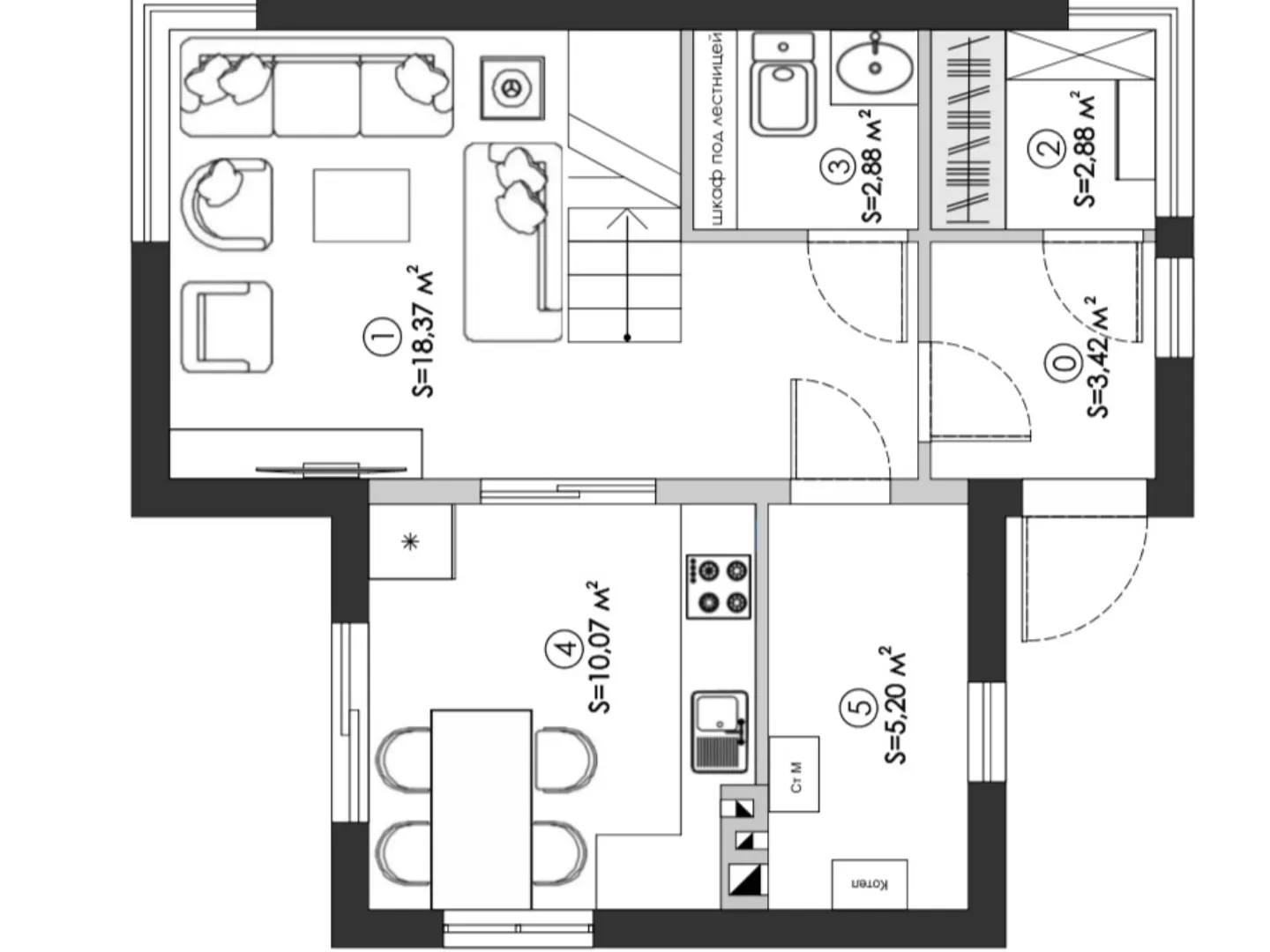 Совмещенная кухня-гостиная