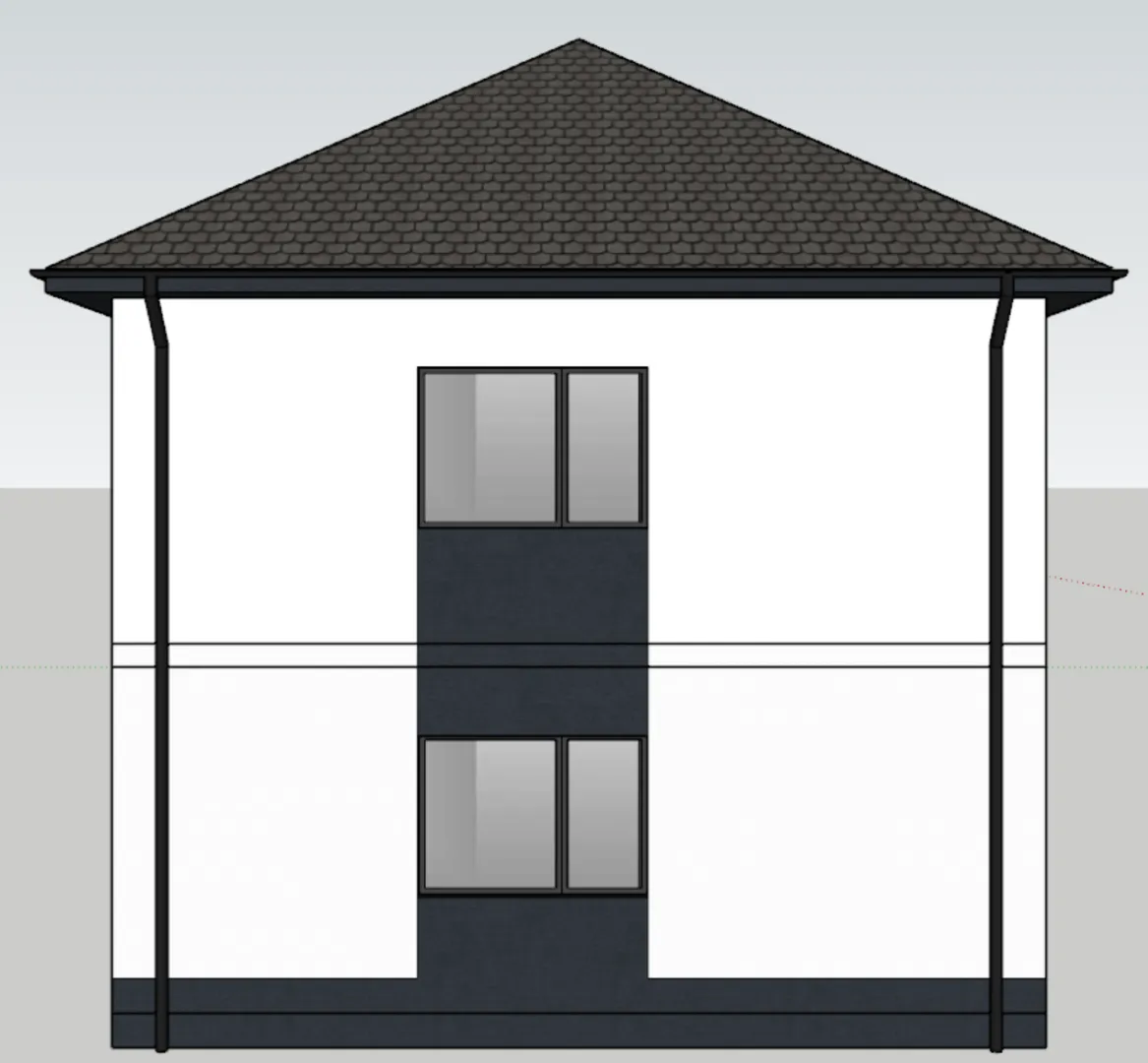 Современный дом KV‑03 – это воплощение европейского стиля, где каждая деталь продумана до мелочей. Двухуровневая планировка придаёт ощущение открытого пространства, не перегружая интерьер. Экологически чистый газобетонный фасад гарантирует отличную теплоизоляцию и долговечность, а четырёхскатная (вальмовая) крыша создаёт мягкий и гармоничный облик, способный украсить любой ландшафт. Дом рассчитан на круглогодичное проживание: от просторных прихожих до светлых, воздушных комнат с высокими потолками, каждый уголок радует простором и естественным освещением. Внутреннее пространство – это настоящий комфорт: большая открытая гостиная, где соединяется кухня и столовая, создавая непрерывность и ощущение единства. Удобные спальни расположены на обоих этажах, предоставляя спокойную и уединенную обстановку. Пристроенное чердачное помещение открывает перспективы для хранения вещей, создания мастерской или домашнего офиса. Отсутствие внешних балконов и веранд не мешает ощущению свежести и открытости – за окнами открывается живописный ландшафт, а просторный внутренний двор дарит ощущение уединённого уголка на открытом воздухе. Дом KV‑03 – это идеальное решение для тех, кто ценит простоту, экологичность и современный комфорт. Его элегантный дизайн и продуманная функциональность делают его привлекательным выбором для семей, ищущих уют и стиль в одном. Позвольте себе наслаждаться каждым моментом в этом гармоничном пространстве и сделайте шаг к своему новому дому уже сегодня.