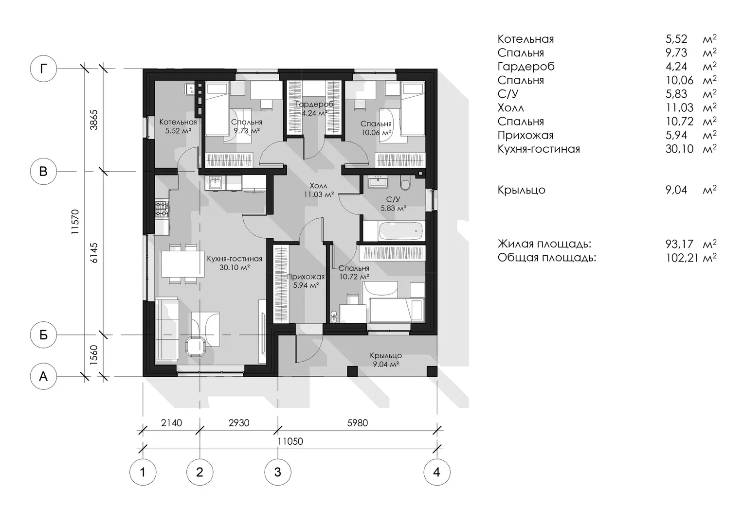 Площадь дома 102 м2