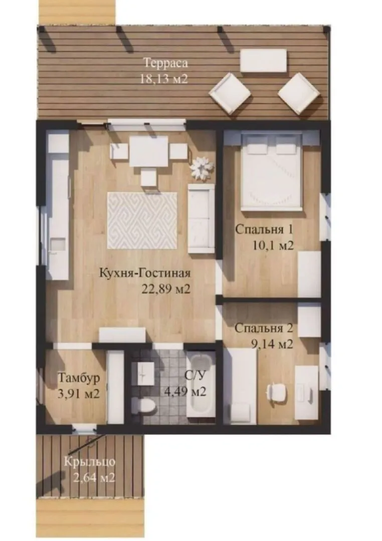 Площадь дома 69 м2