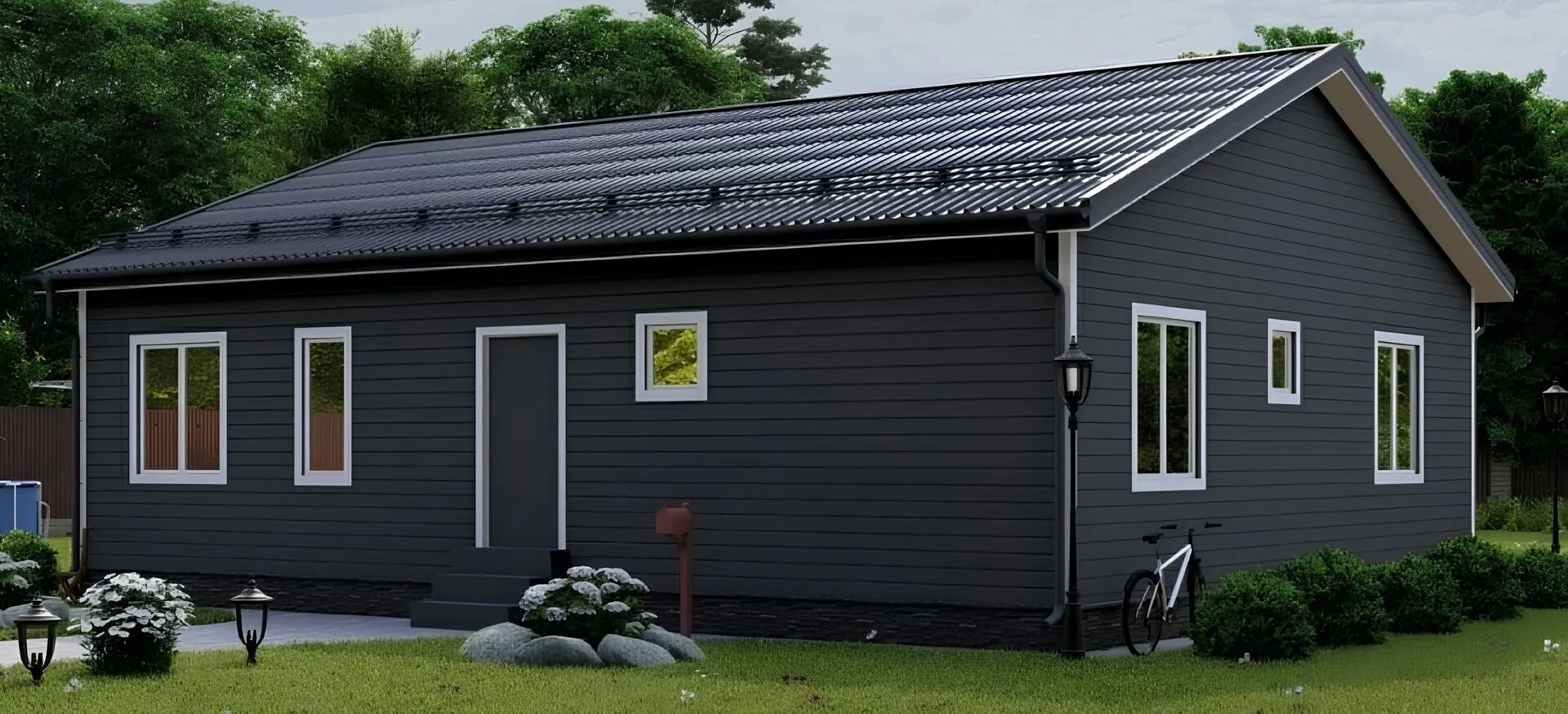 Загородный дом с сайдингом графит