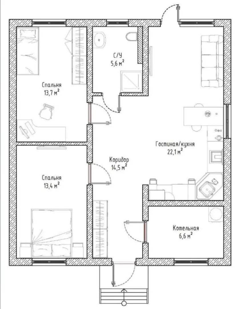 Площадь дома 75 м2